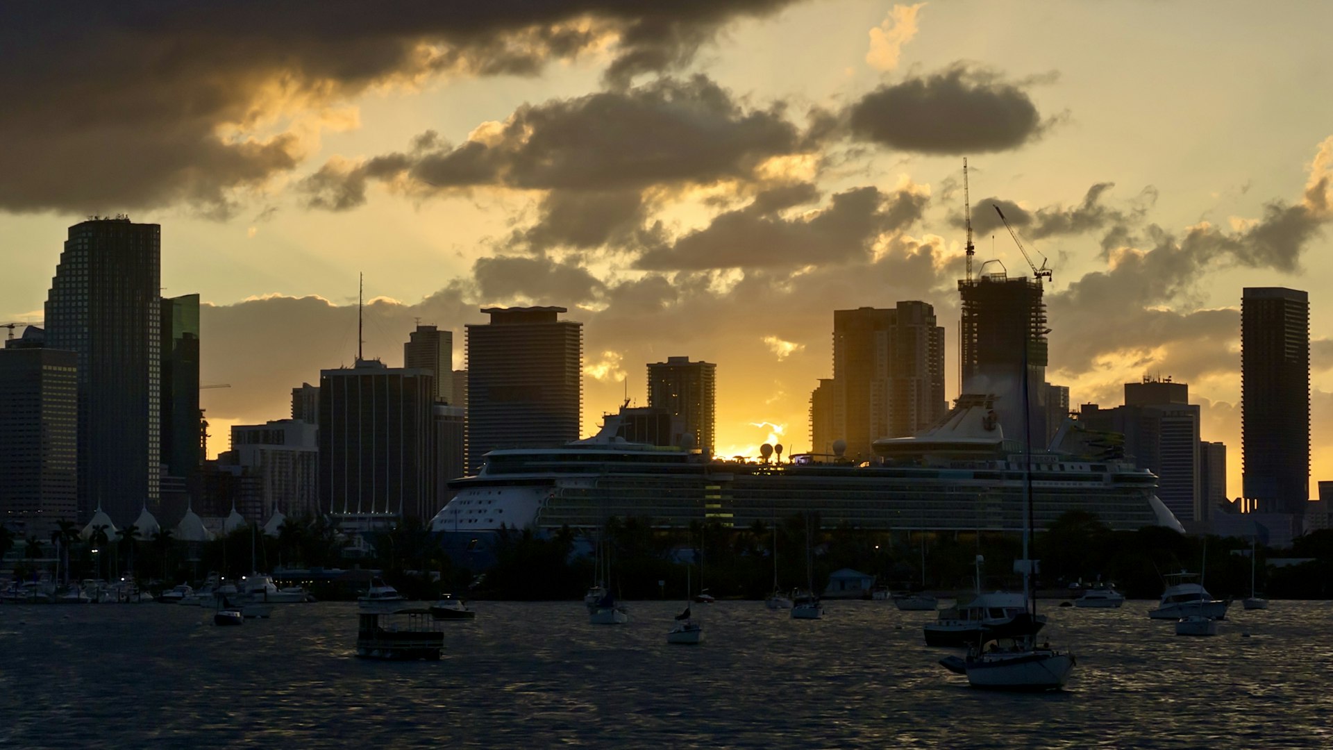Board at Dinner Key Marina, Coconut Grove, Miami — one of the largest marinas on the eastern seaboard and well-placed for provisioning at the nearby Whole Foods and Epicure Market. An afternoon briefing with the captain covers the route, weather window and reef protocol before a short shakedown cruise across Biscayne Bay. Anchor off Boca Chita Key for the first night, with Coconut Grove's lights visible on the northern horizon.