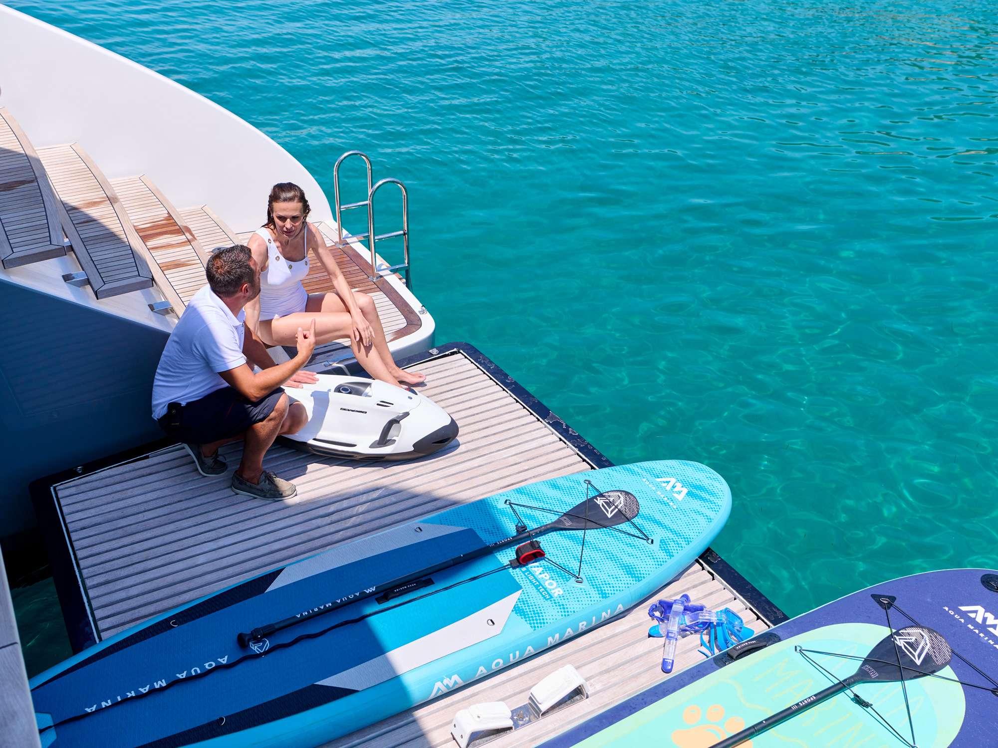 - •Water toys including Highfield 520 tender, Sea Bobs, wakeboard, and adult water skis for active exploration