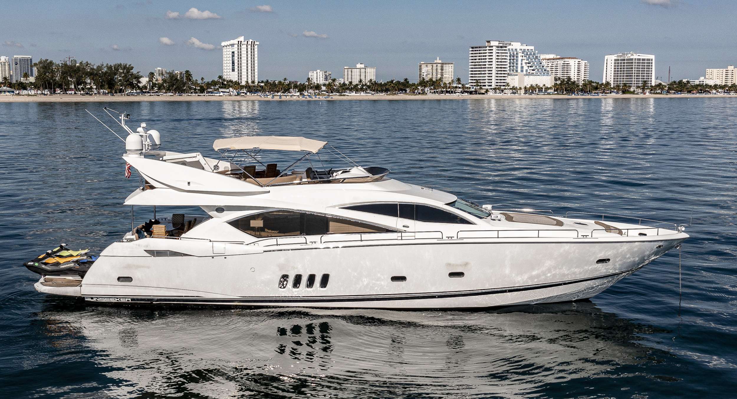 Acqua Alberti is a refined Sunseeker 82 offering four elegantly appointed cabins for up to eight guests. The yacht combines contemporary design with classical furnishings, featuring a bright saloon with comfortable seating, a formal dining area, and rich wooden accents throughout. The master cabin features a king bed and marble en-suite; the VIP cabin and two twin cabins each have their own modern facilities.