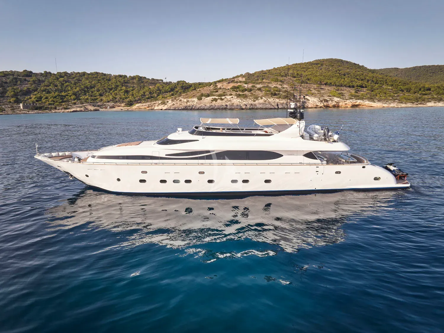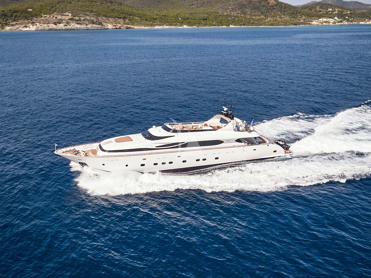 ANASA is a Maiora 35DP motor yacht that commands attention through purposeful design and refined restraint. Her contemporary profile, clean lines, and confident proportions announce a vessel built for serious cruising. Inside, Italian-influenced interiors flood with natural light, creating calm gathering spaces that transition effortlessly from social moments to intimate retreats. On the flybridge, an open-air lounge, alfresco dining, and mini jacuzzi frame the Aegean light as it moves across the day.