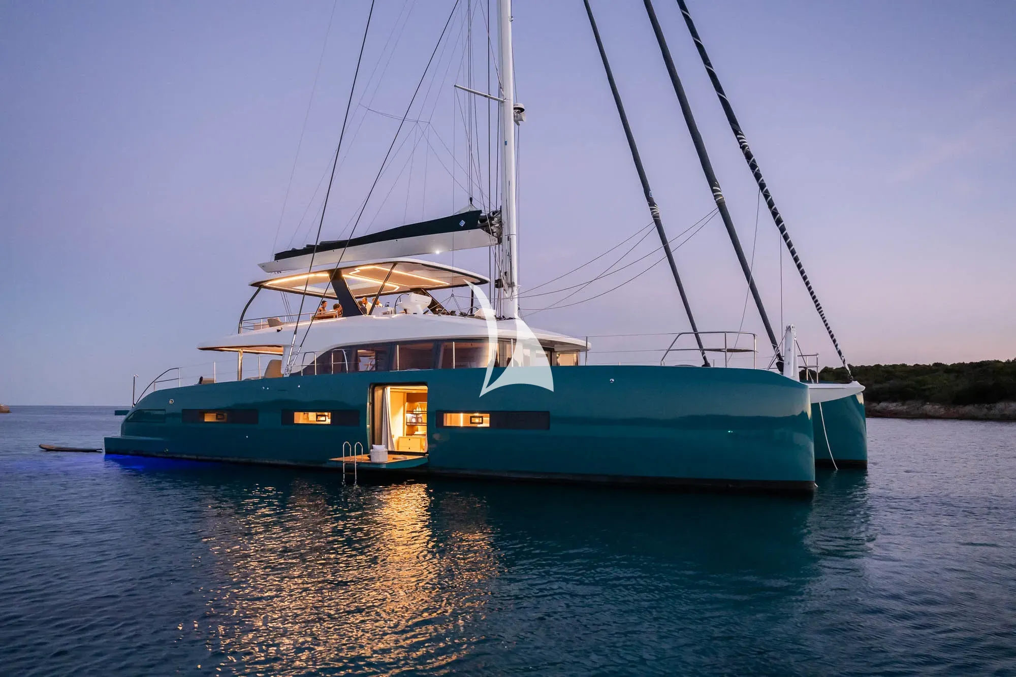 ARKTOS embodies the refined ease of Mediterranean cruising. Built on the Lagoon Eighty 2 platform, this four-cabin catamaran balances social spaces with quiet retreats, encouraging days spent between the teak flybridge, twin trampolines, and aft deck. Her teal blue hull and contemporary interior with teak detailing create an understated aesthetic suited to both active exploration and leisurely anchoring.