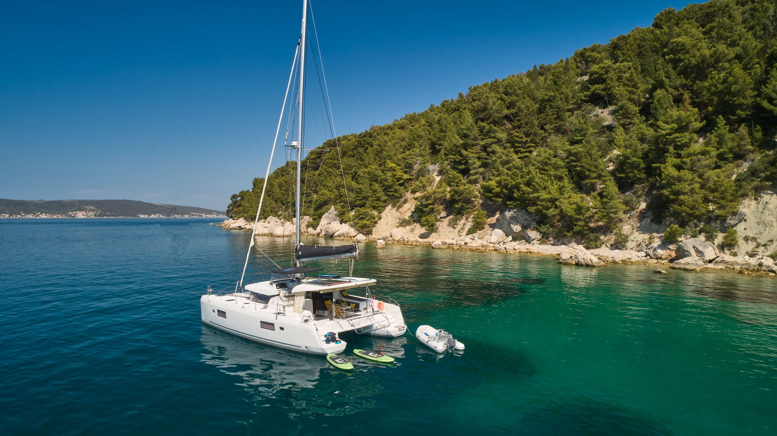 The Adriatic presents an uncluttered playground of islands, anchorages and coastal villages spanning from Split southward to Dubrovnik. Days unfold at your own rhythm: morning swims in crystalline bays, leisurely lunches of fresh Adriatic seafood prepared aboard, and anchorages in protected coves. The catamaran's stability and shallow draft access sheltered waters inaccessible to larger vessels, whilst superior onboard amenities including air conditioning, WiFi, and a full galley mean you never compromise on comfort.