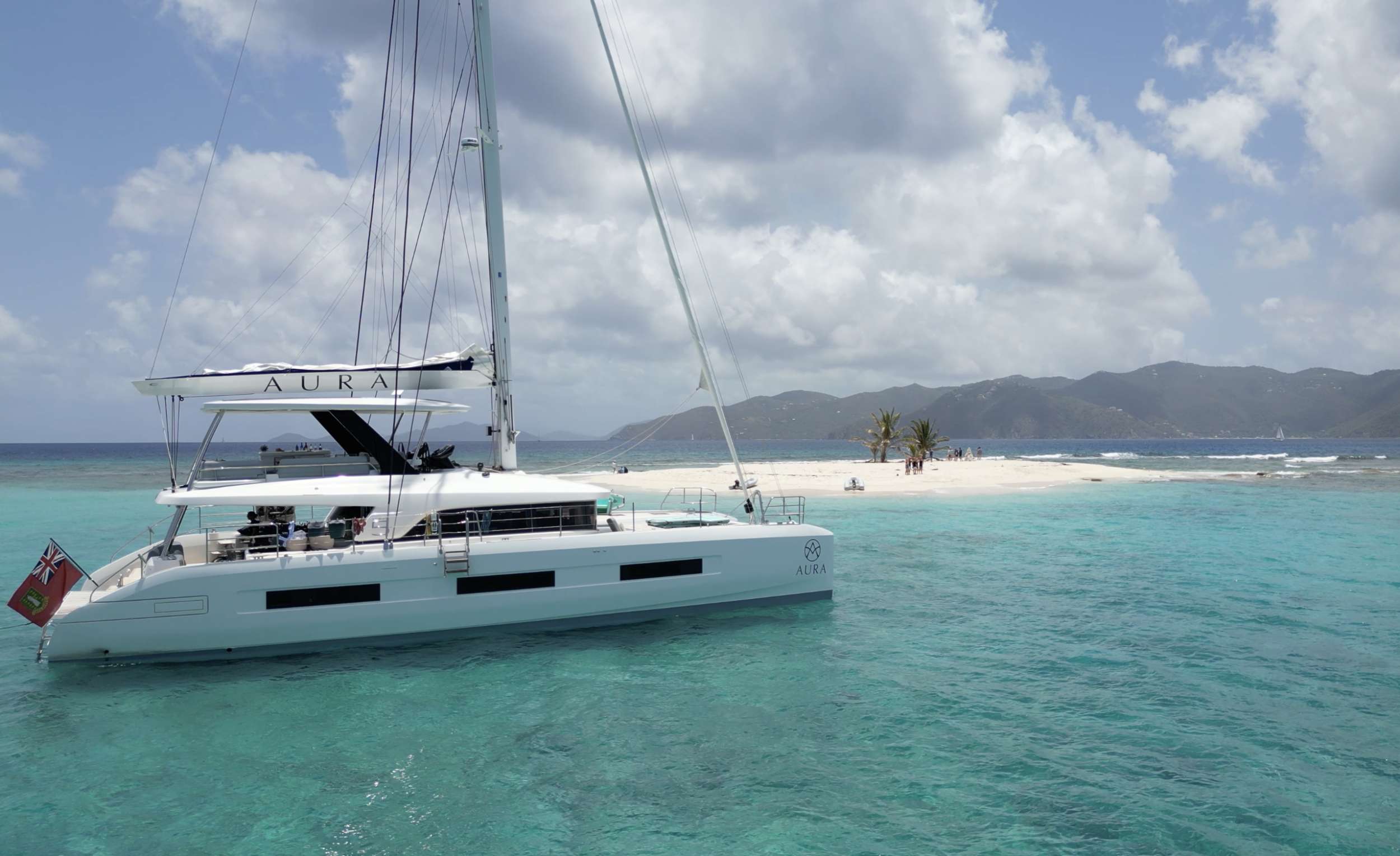AURA is a Lagoon 65 catamaran launched in 2023, purpose-built for discerning charter parties seeking the British Virgin Islands. Her catamaran hull delivers stability and shallow-draft access to exclusive anchorages across Tortola, Virgin Gorda, and Anegada. The generous double cabins accommodate up to eight guests in comfort, with a master suite featuring king bed and double shower alongside three queen cabins with private ensuites.