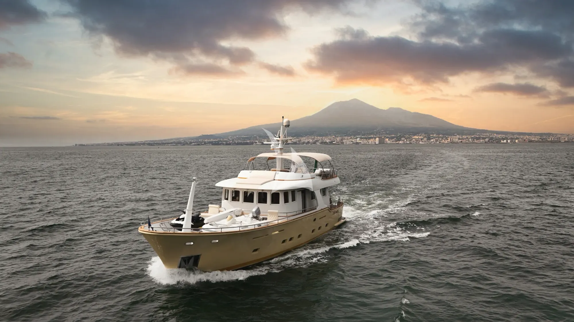 The flybridge is where life gravitates, offering uninterrupted views across the Aeolian Islands. The aft deck transforms into an intimate dining space as evening approaches, whilst the saloon provides a refined retreat for quieter moments. Every detail reflects thoughtful planning rather than unnecessary flourish.