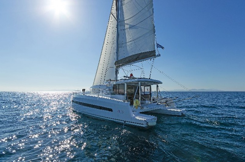 Cyclades sailing in a versatile Bali catamaran, bareboat from Athens