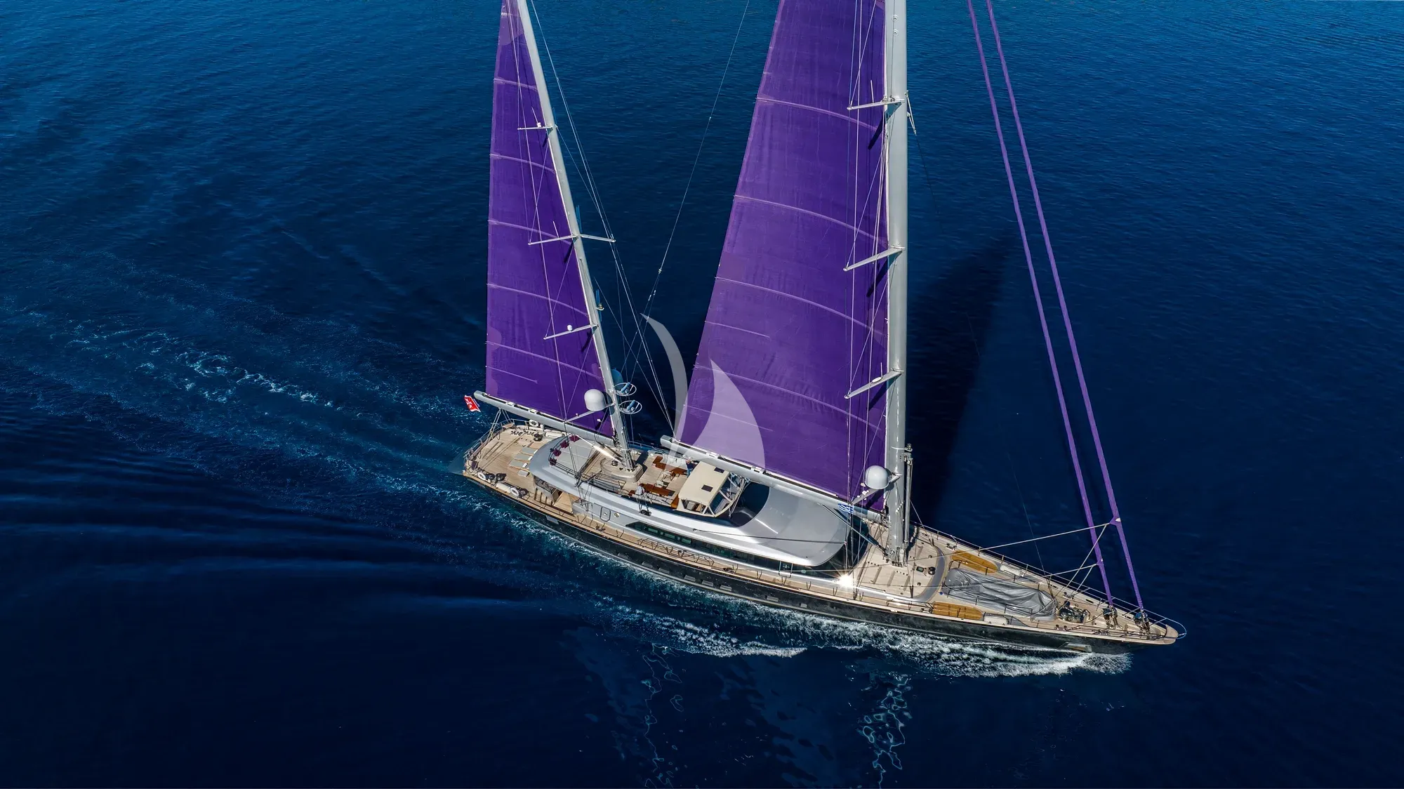 BARACUDA VALETTA is a Perini Navi sailing yacht offering refined cruising across the Aegean. Her grey metallic hull and distinctive purple sail mark a vessel built for serious seafaring combined with sophisticated onboard living. Five cabins accommodate ten guests, each with private facilities and entertainment systems, whilst the saloon bathed in natural light serves as an elegant gathering space for dining and socialising.
