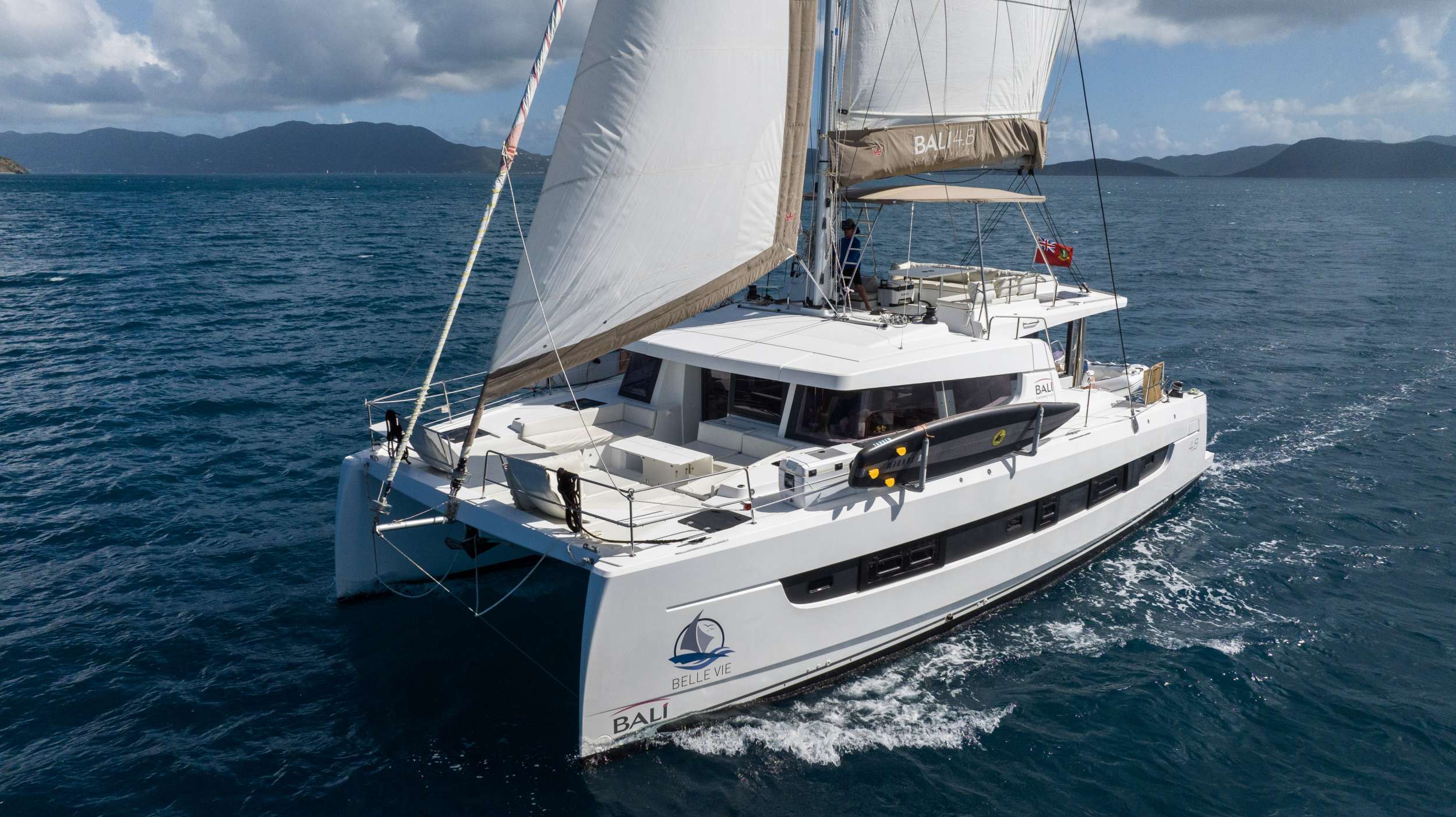 BELLE VIE is a Catana Bali 4.8 built in 2020, purpose-designed for discerning groups seeking seamless Caribbean sailing. Four generous double cabins with en suite facilities accommodate eight guests in genuine comfort, while the innovative saloon opens entirely to the aft deck, creating one unified entertaining space that flows naturally between interior and sea.