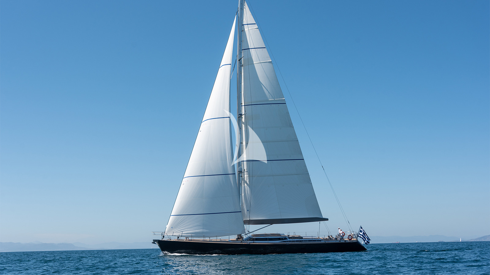 Black-hulled Perini Navi elegance across the Cyclades