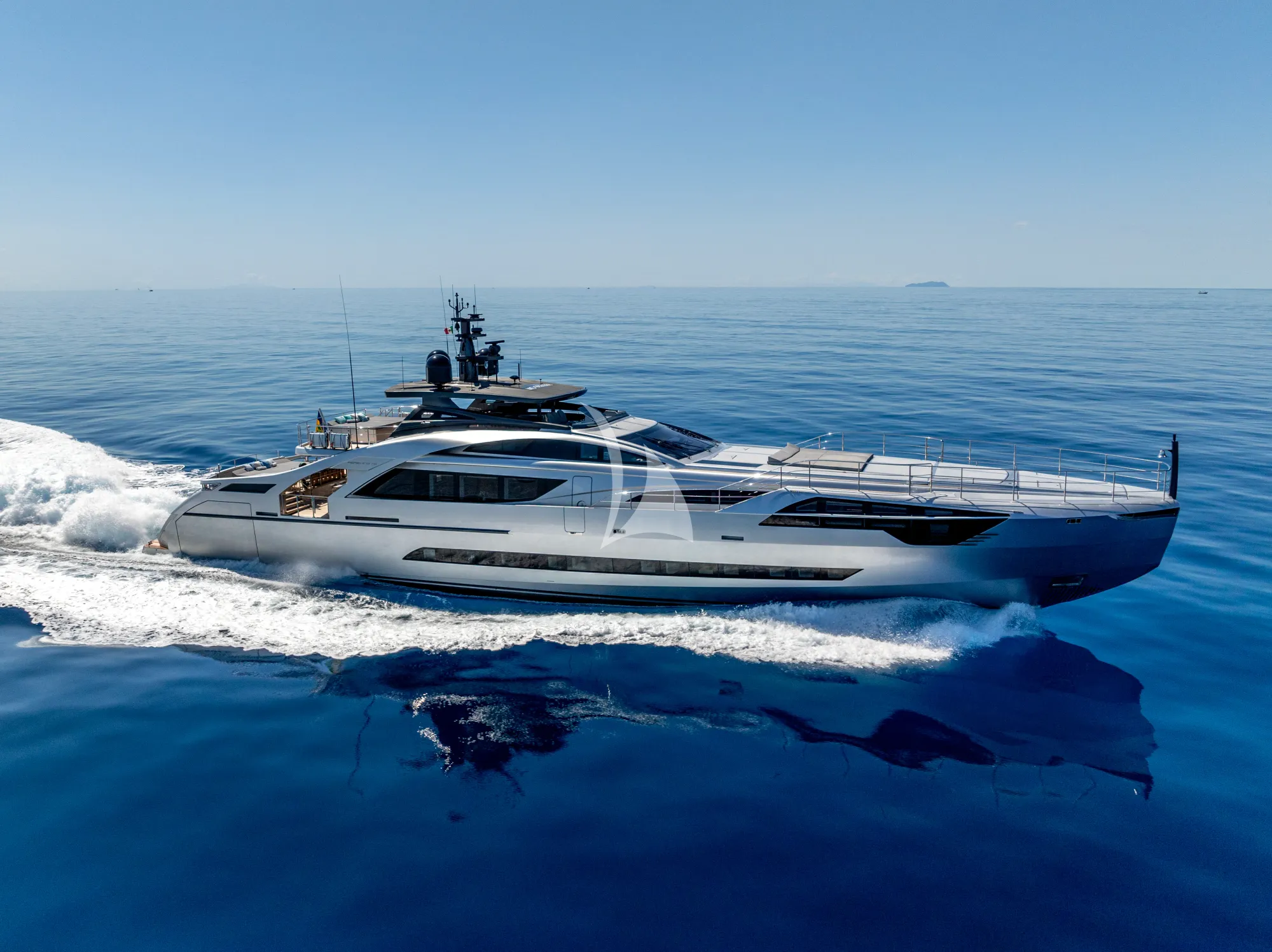 - •Pershing 140 design with commanding contemporary profile and panoramic glazing