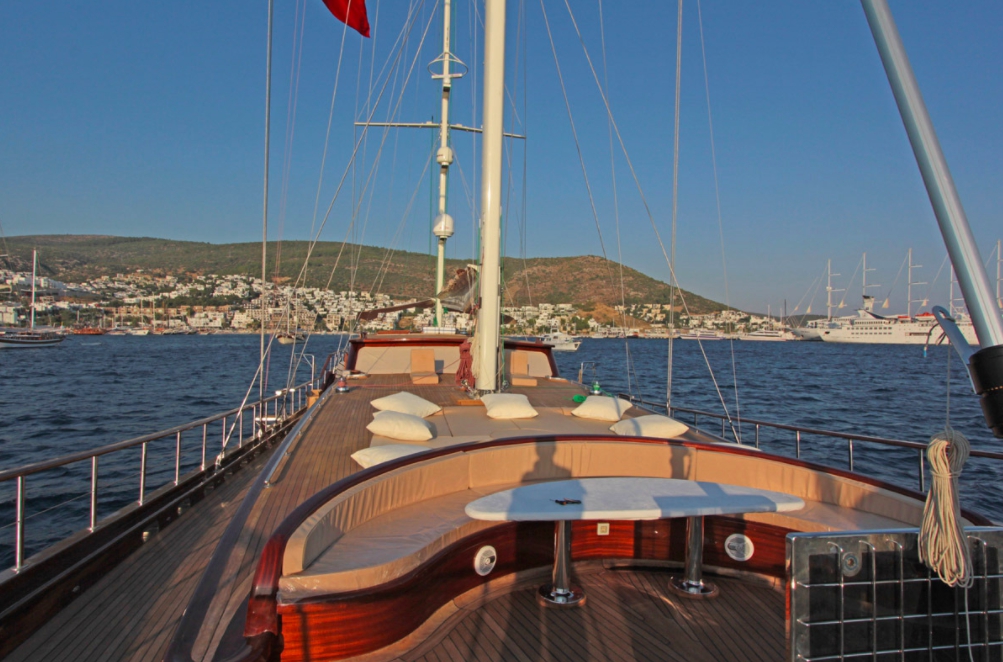 A typical week might begin in Bodrum or Gocek, navigating north through sheltered bays towards the Lycian coast, then crossing to the Cyclades for island stops at Symi, Paros and Naxos before returning. The gulet's timber construction and manageable size suit both established anchorages and quieter coves where charter guests can dive, fish or simply observe Greek island life from the comfort of your private deck.