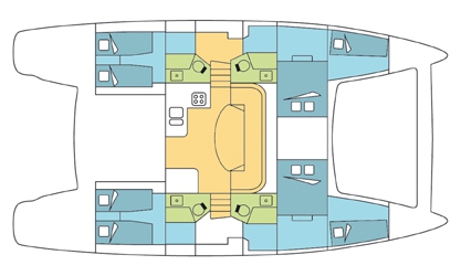 The Catana 47 Custom offers intelligent design married to practical comfort, ideal for bareboat charterers seeking independence across the South Pacific. Natural light defines the generous interior, whilst twin hulls deliver stability and shallow-draft access to protected anchorages. Four double and two single cabins sleep up to 10 guests without compromise.