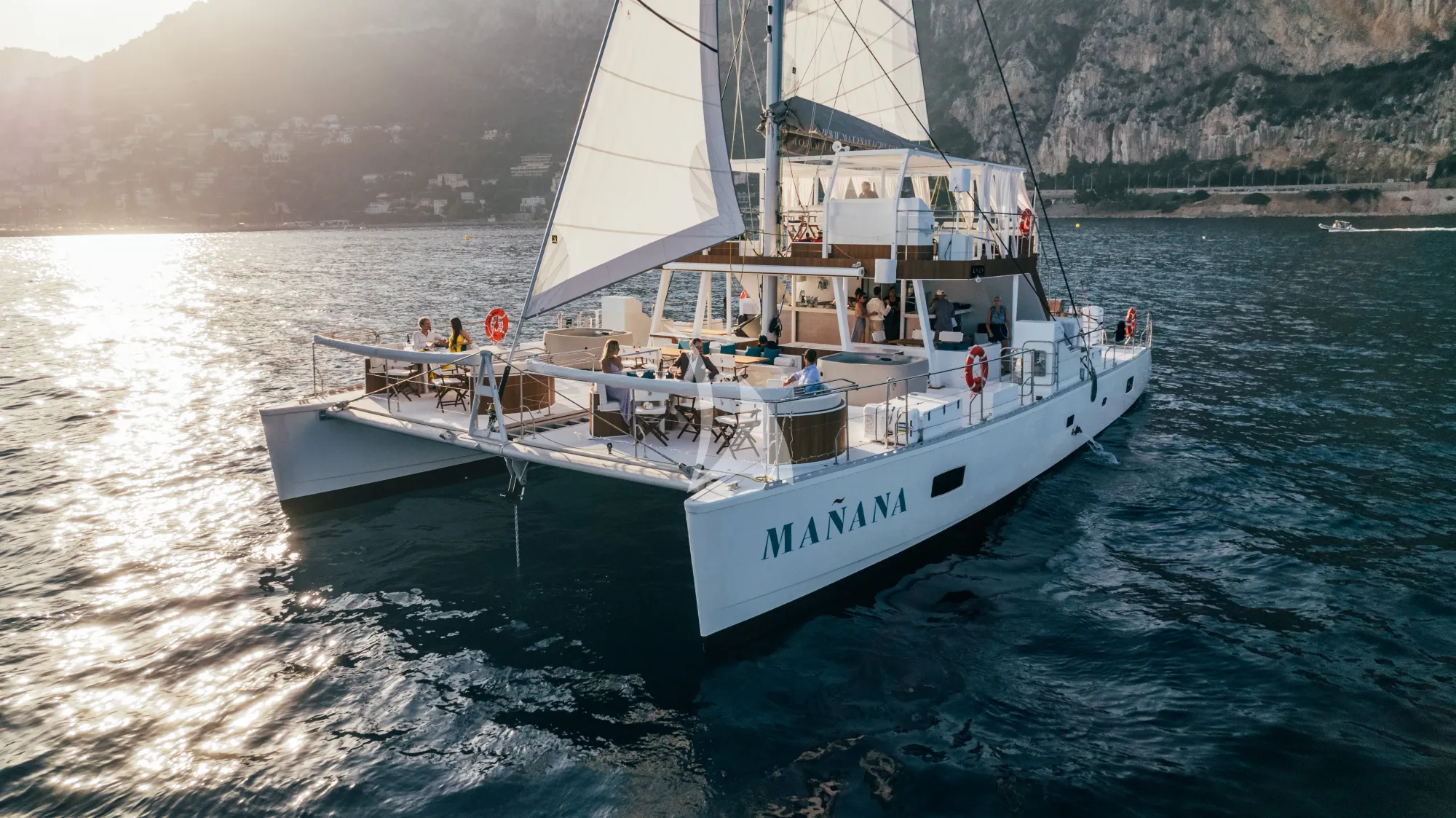 Day and sunset cruises along the French Riviera reveal the coast's most coveted anchorages, from the Îles d'Hyères to the Esterel. Your three-person crew navigates prime swimming spots and beach clubs whilst managing service and hospitality. Evening cruises capture the Mediterranean's golden hour as you drift past Cannes and Saint-Tropez. Whether celebrating a milestone or hosting a corporate event, MANANA delivers the social infrastructure and seasoned crew to execute memorable moments at sea.