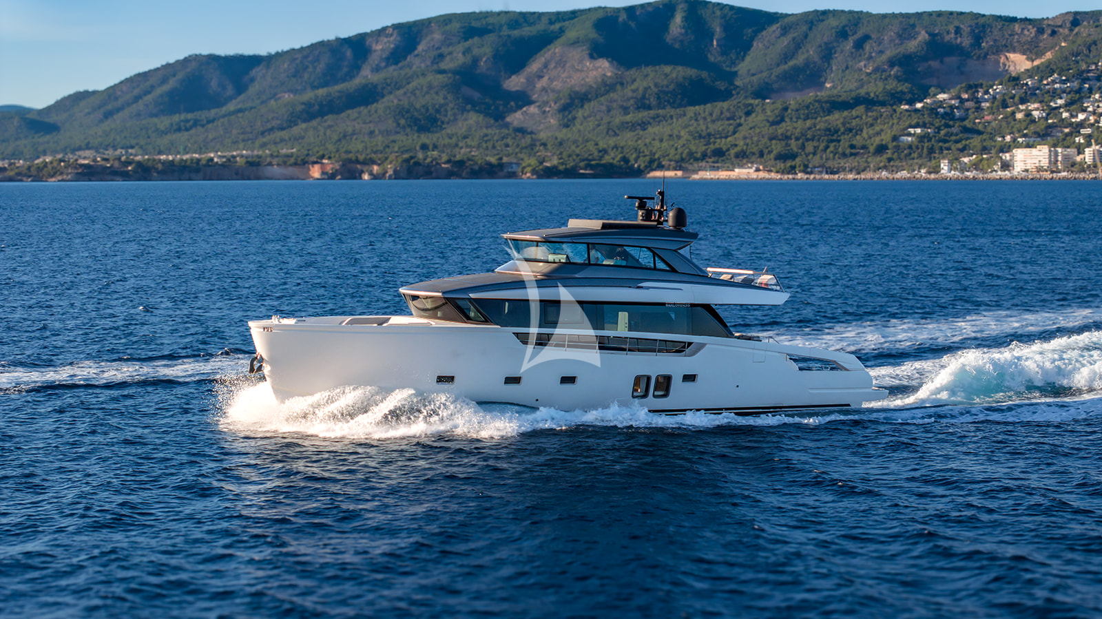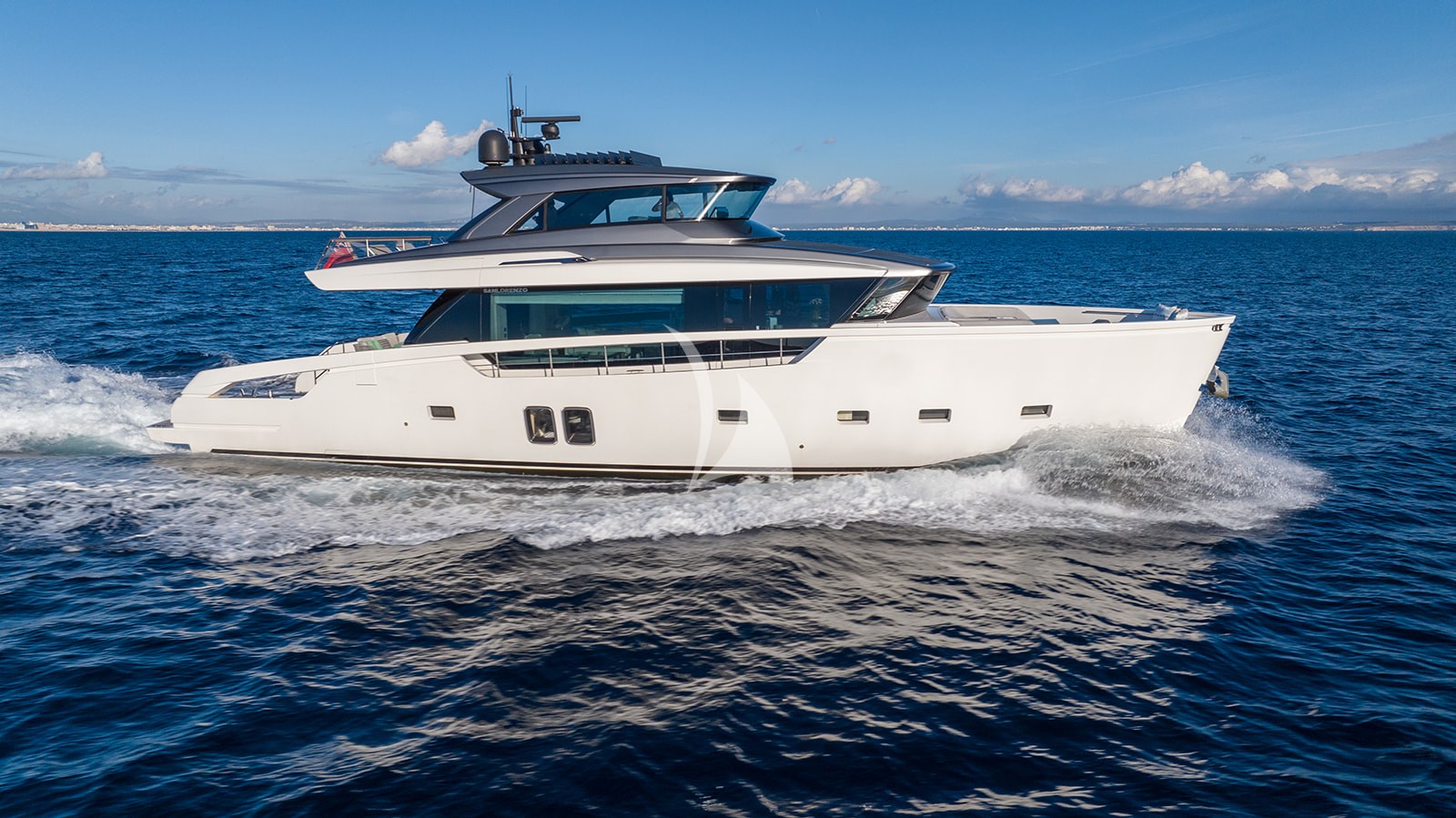 CLOUD IX is a Sanlorenzo SX76 motor yacht built for discerning travellers who value both refined comfort and genuine adventure across the Mediterranean. Her streamlined profile and intelligent design create a light, welcoming interior where panoramic glass flooding the saloon and dining spaces frames the sea beyond. Three thoughtfully appointed cabins, including two doubles and one twin configuration, accommodate up to seven guests in understated style.