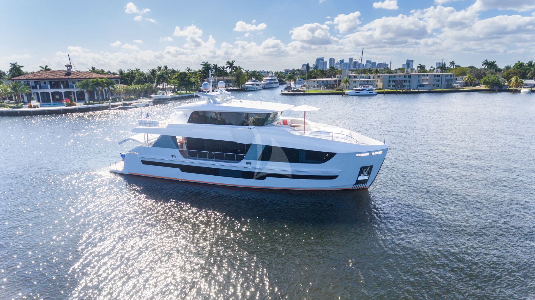 DAY ONE is a Hargrave Compass C92 completed in 2020, refined and maintained to exacting standards. Her sporty yet sophisticated exterior gives way to a carefully curated interior where modern art pieces punctuate neutral tones, creating spaces that feel both gallery-like and welcoming. Four cabins accommodate eight guests across a main deck master suite with dual bathrooms, a further double, a twin, and a convertible cabin.