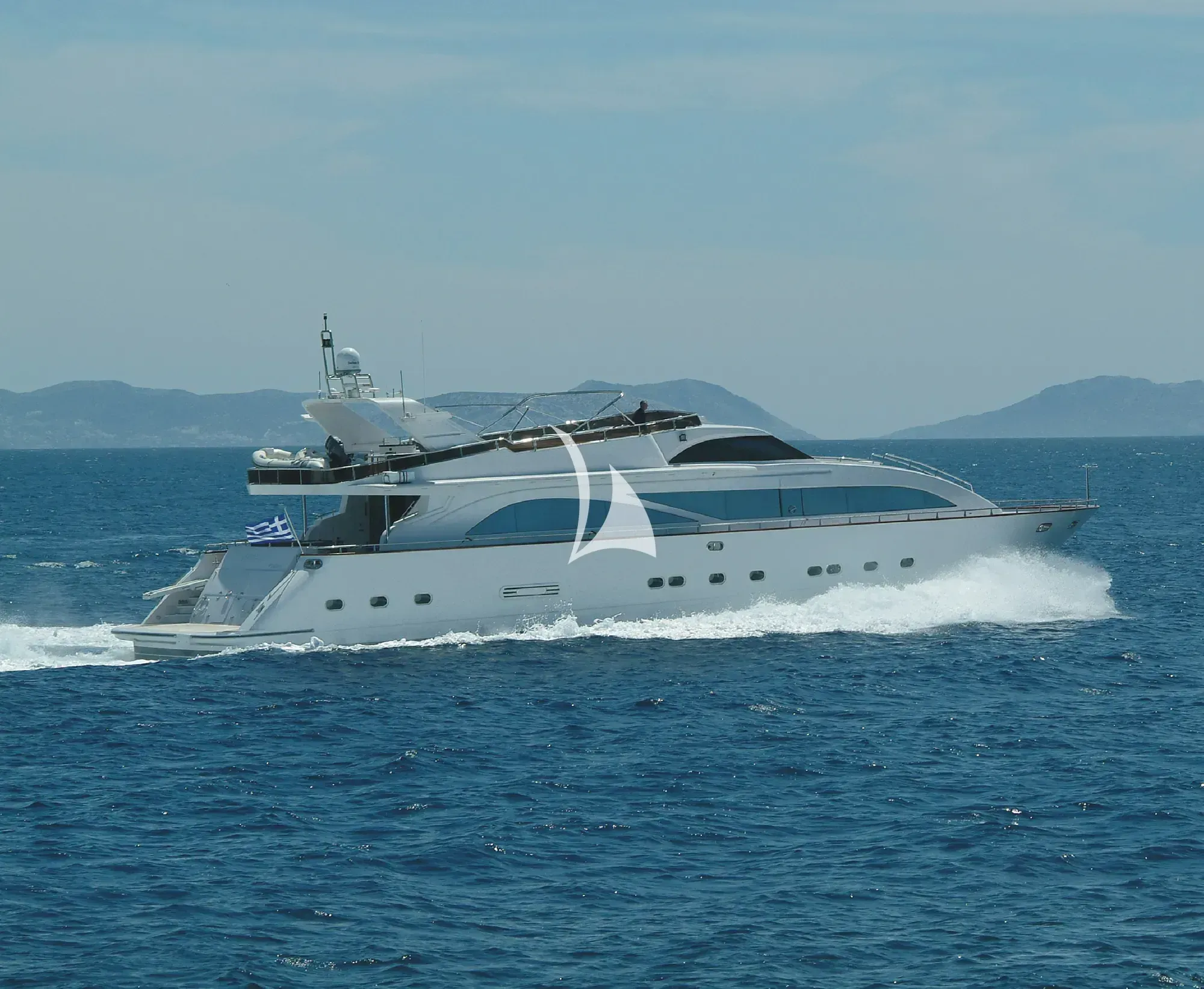 Giant 99 motor yacht for Cyclades exploration with five-cabin comfort