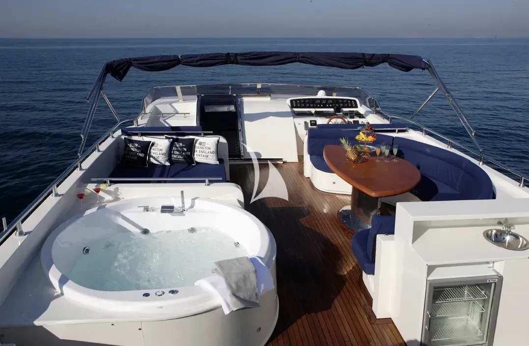 - •Flybridge with jacuzzi and alfresco dining overlooking the Aegean