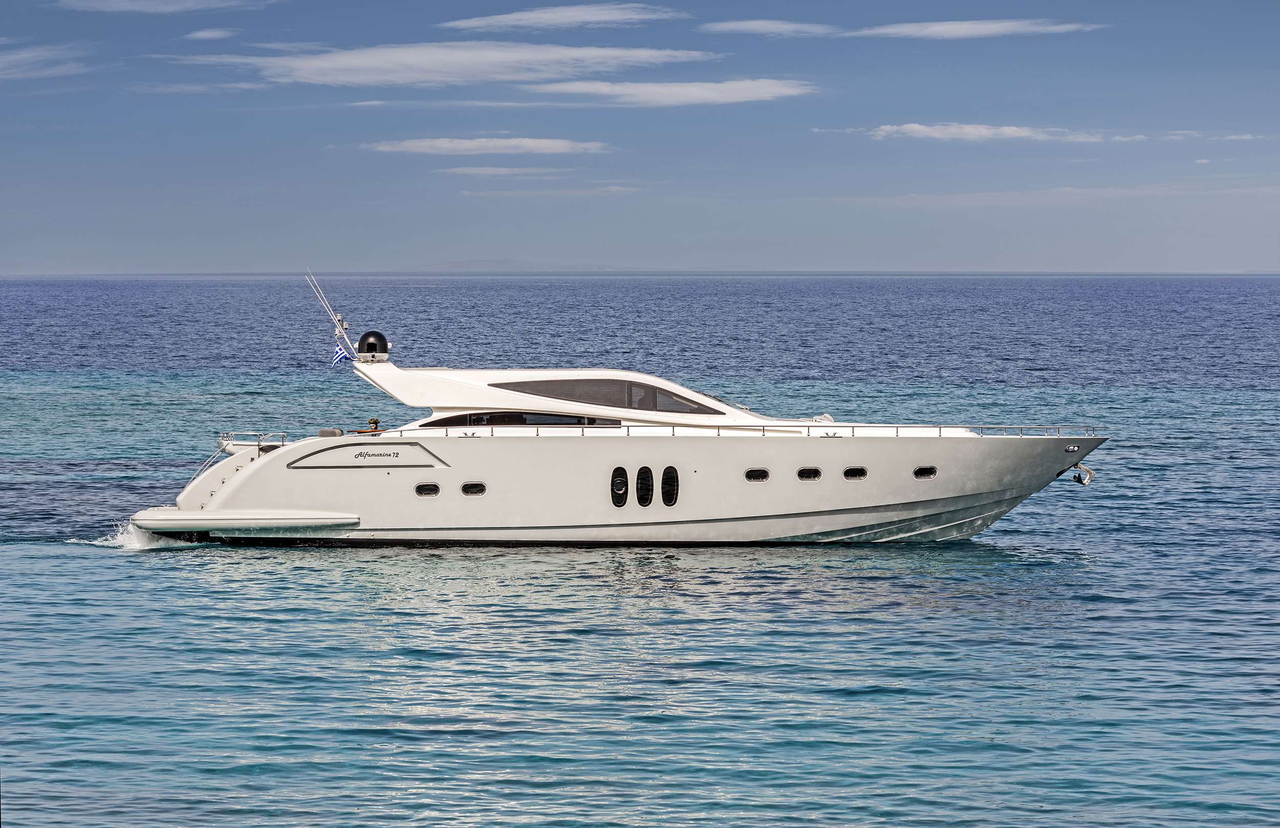 Alfamarine 72 motor yacht in the Cyclades, crewed for six