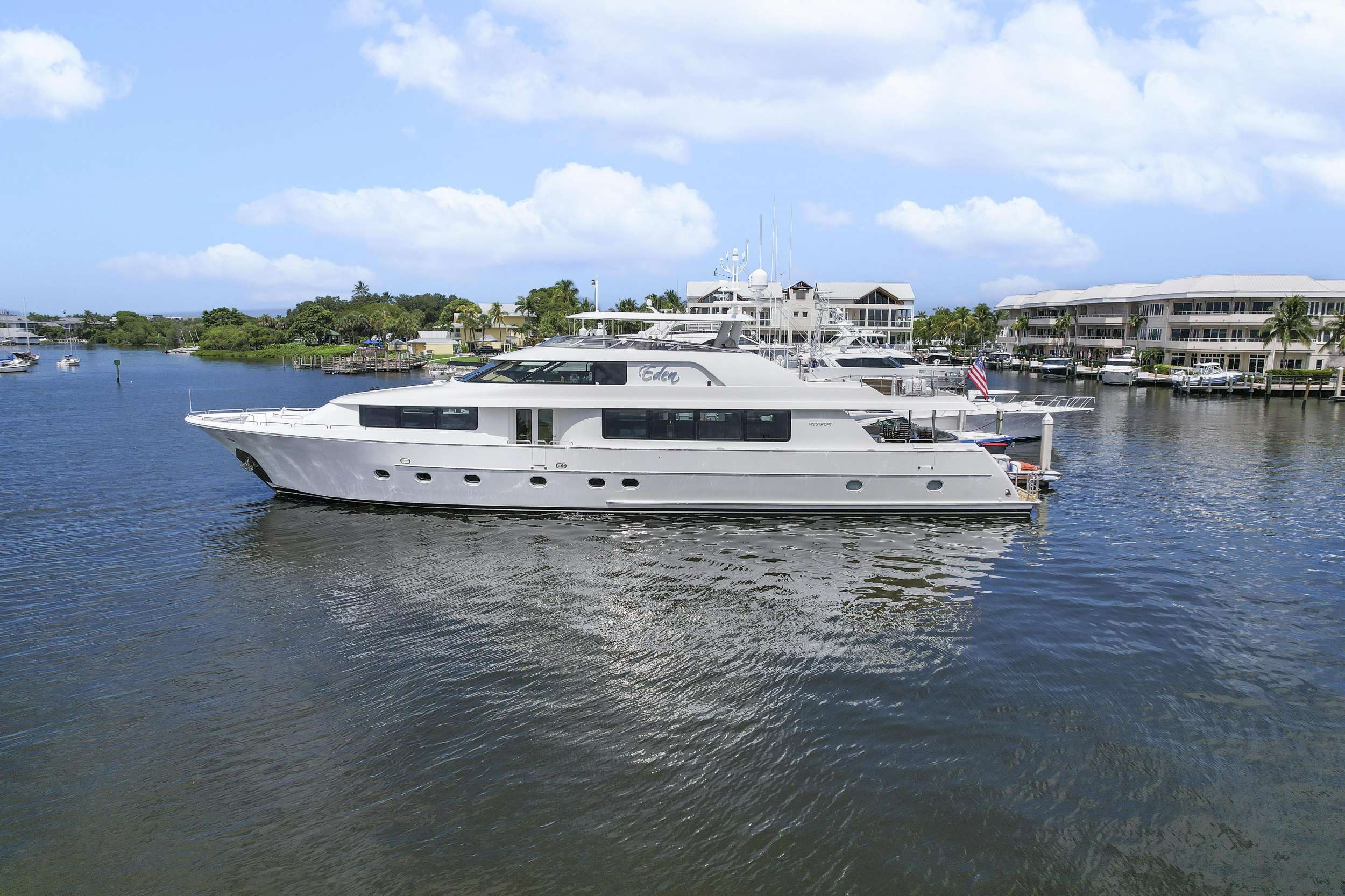 EDEN is a Westport 112 motor yacht offering refined comfort across four generously appointed cabins. Built in 2007, she combines sophisticated modern interiors with a proven cruising platform, ideal for discerning guests seeking stability and privacy in tropical waters.