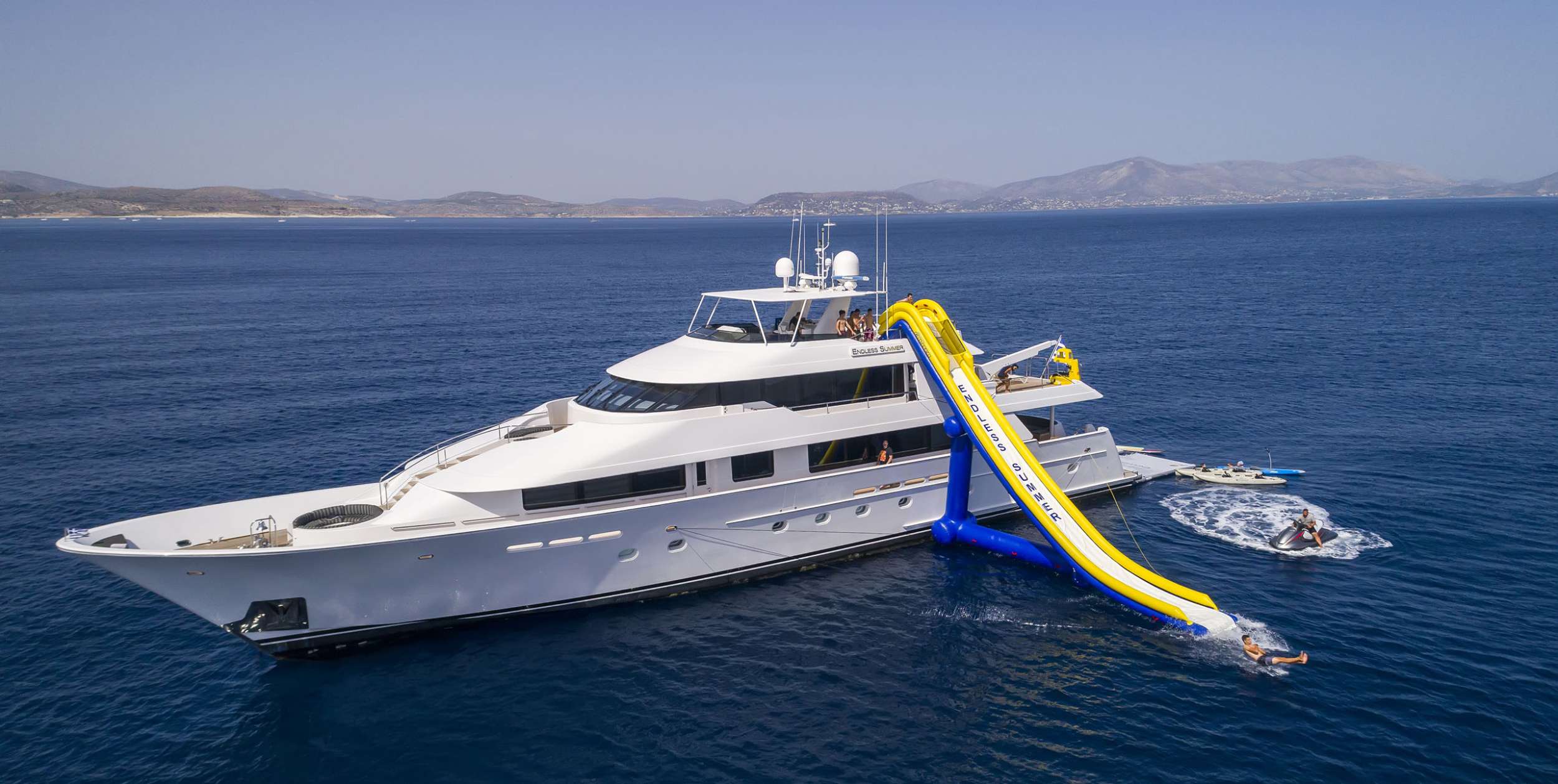Based in Athens, ENDLESS SUMMER sails the Cyclades, Dodecanese, and Ionian islands at a pace that suits your preferences. Days unfold between Santorini's caldera views, Mykonos' sheltered anchorages, and Rhodes' quieter coves. The crew manages all logistics whilst you and your party enjoy the rhythm of the Aegean. Watersports options include a tender with outboard, wave runners, windsurfing, scuba diving, water skiing, and kayaks, plus a water slide for those seeking more vigorous pursuits.