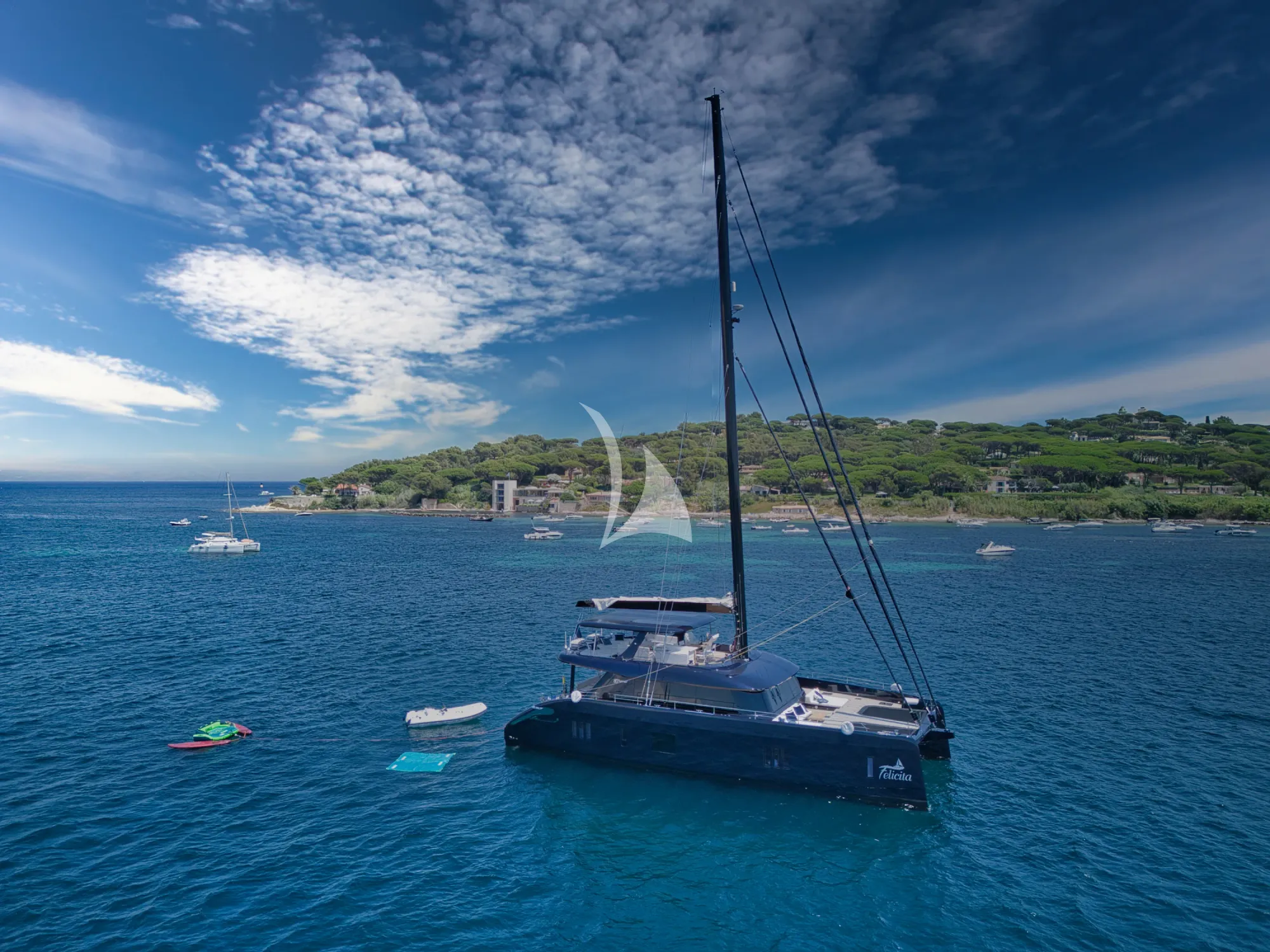 FELICITA is a Sunreef 80 catamaran built in 2024, offering five cabins and accommodation for ten guests. Her design combines the stability and space of a modern catamaran with the refined finishes expected at this level of charter. Departing from Sardinia or the French Riviera, she operates across the West Mediterranean with a professional crew trained to orchestrate seamless transitions between anchorages, dining moments, and quiet days at sea.