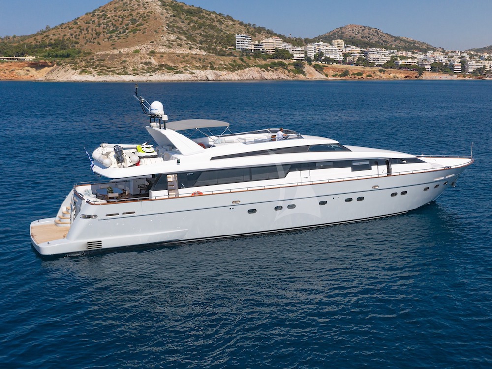 Sanlorenzo 100 motor yacht for twelve in the Cyclades