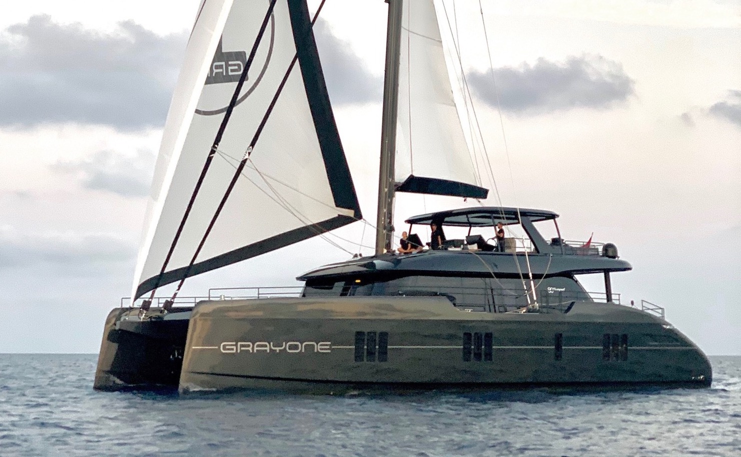 GRAYONE is a Sunreef 80 catamaran built in 2020, designed for discerning travellers seeking refined comfort across the Aegean. Her twin-hulled platform provides exceptional stability and generous deck space, whilst the contemporary interior features three double cabins and one twin, each appointed with calming dark grey accents and premium furnishings.