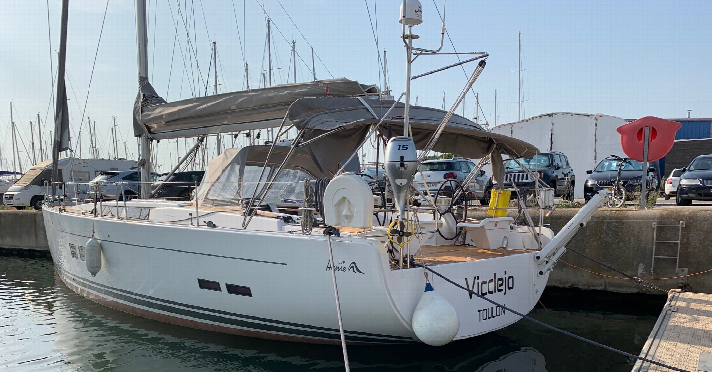 Her bright, uncluttered salon flows seamlessly into a well-appointed galley where provisioning is straightforward. Modern systems including air conditioning, GPS/autopilot, and a generator ensure reliability across the Mediterranean. The cockpit layout prioritises easy sail management, allowing even less experienced crews to enjoy confident handling.