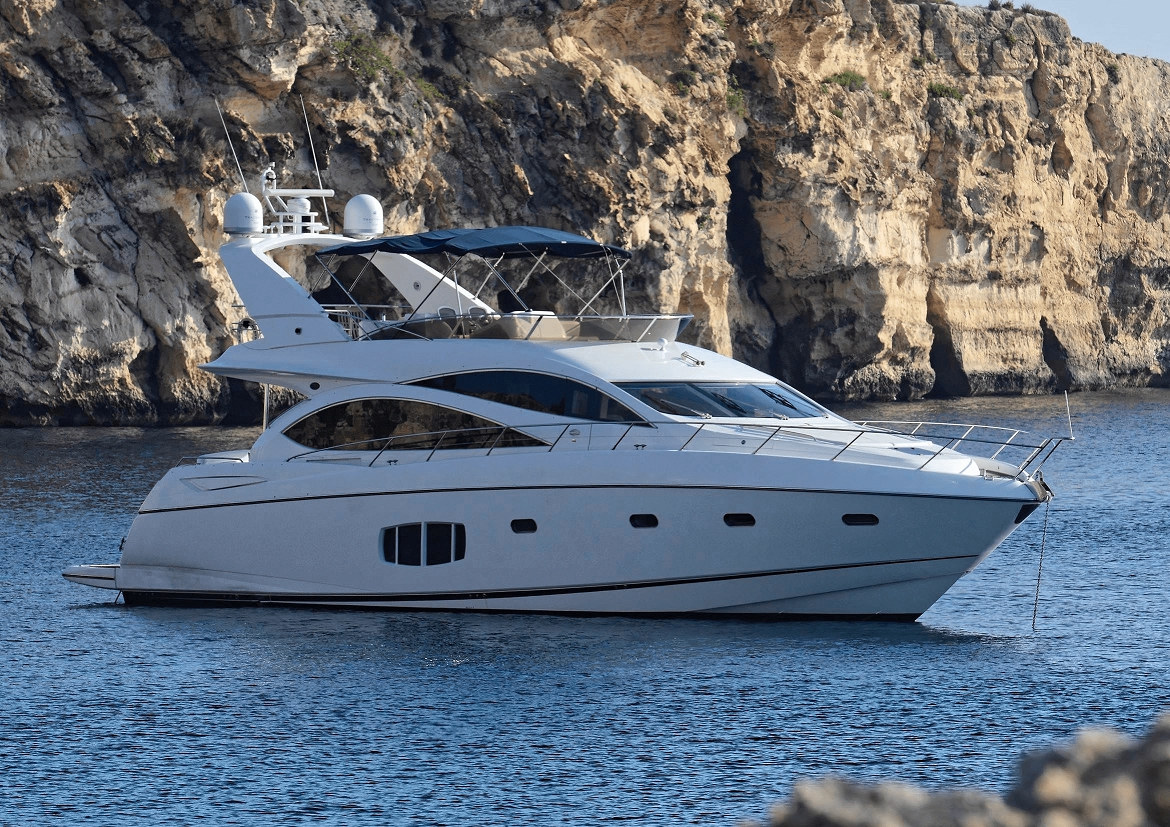 HAYAT is a Sunseeker 22m motor yacht that combines contemporary design with the practical comfort required for extended Mediterranean cruising. Refreshed in 2017, she accommodates up to eight guests across four thoughtfully appointed cabins, including a generous master suite and additional double and twin configurations ideal for families and friend groups alike.
