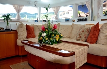 - •Catamaran design delivers stability in light seas and access to shallow-draft anchorages throughout the Leewards and Virgin Islands