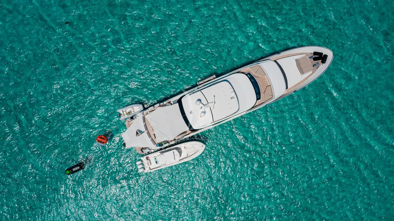 The interior strikes a balance between brightness and intimacy. The saloon and dining area accommodate group gatherings without sacrificing the quiet spaces guests expect aboard a vessel of this calibre. The beach club provides direct access to the water, whilst the engineering beneath her sporty profile delivers smooth, confident passage across Caribbean waters.