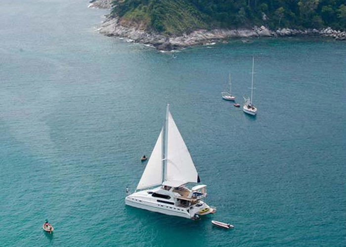 Catamaran luxury for 60 guests, dive-ready in the Andaman Sea