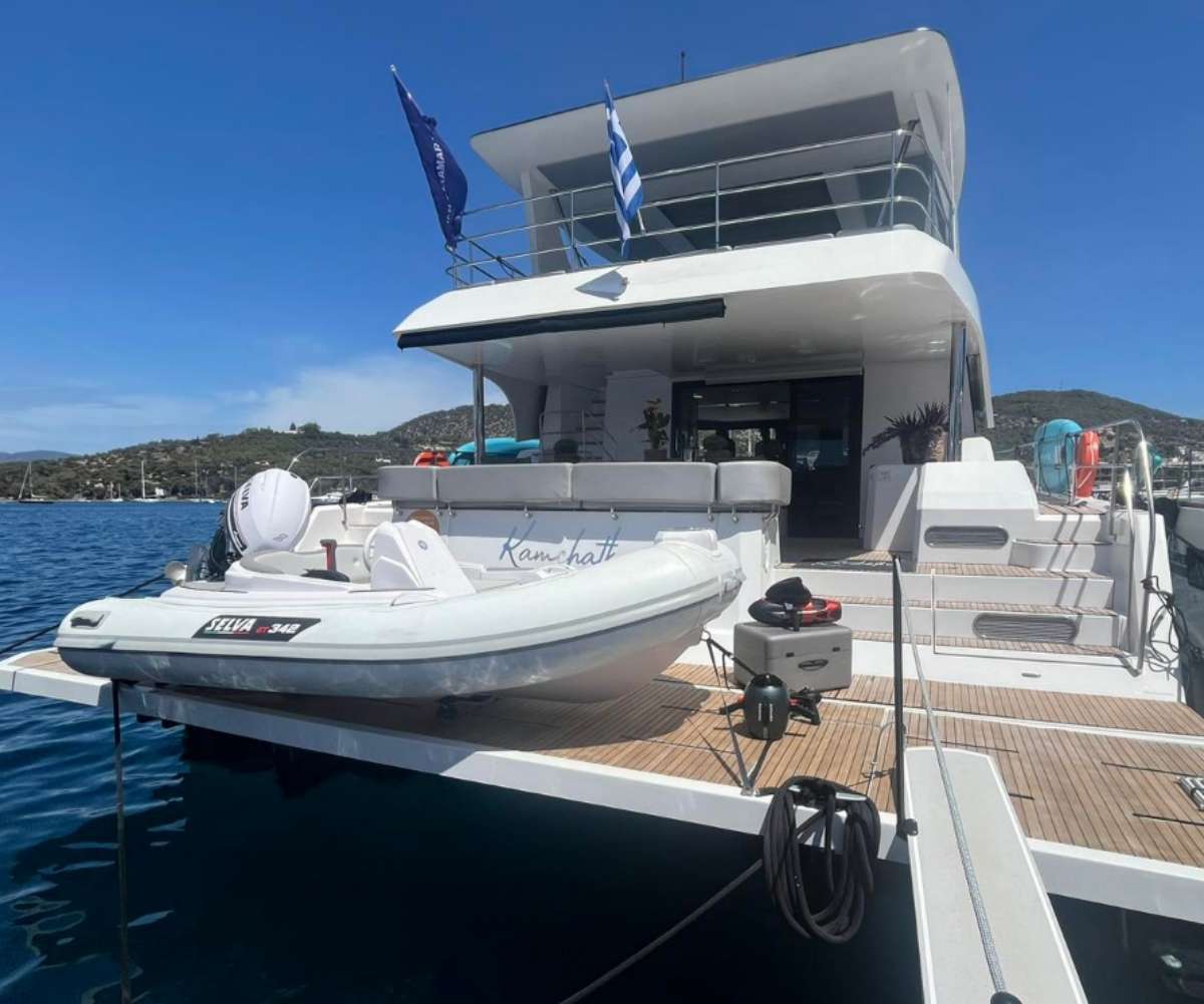 KAMCHATKA is a contemporary Aventura power catamaran, built in 2021 and purpose-designed for discerning groups seeking comfort without compromise. Her twin-hull design delivers stability across the Ionian's azure waters, whilst the elevated flybridge and expansive sun deck provide multiple vantage points for the region's dramatic coastlines. Four generous cabins accommodate eight guests in appointed comfort, each with private en-suite facilities.