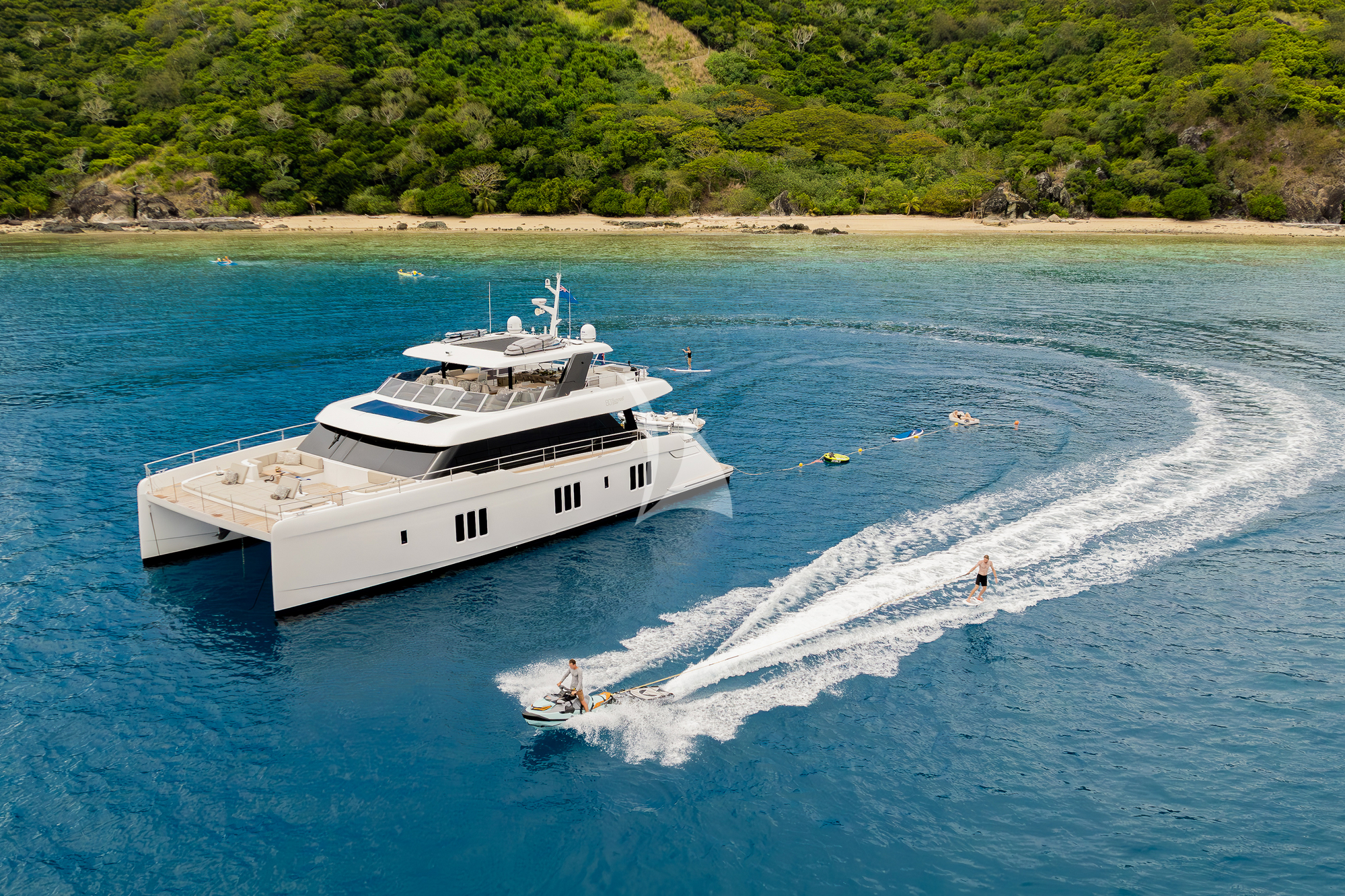 - •Catamaran hull delivers stability and shallow-water access; A/B jet tender plus jet ski expand radius of exploration