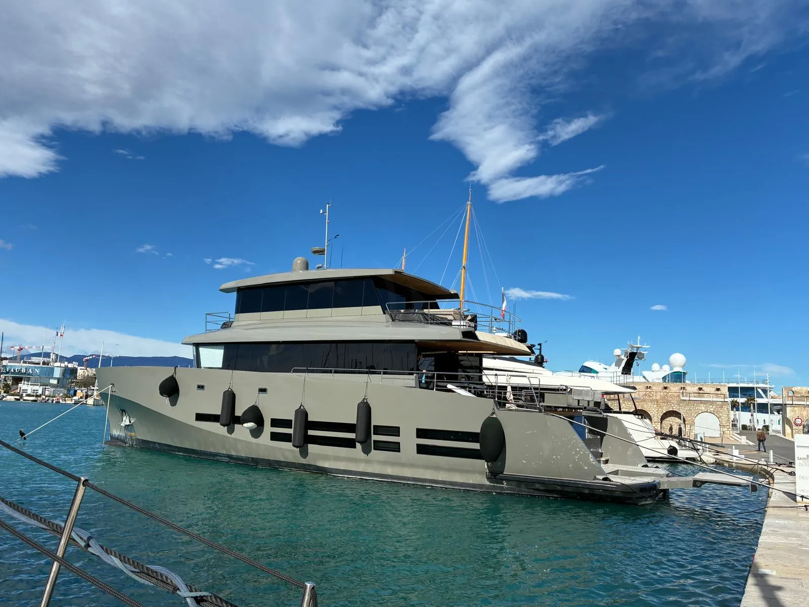 The flybridge presents an enviable vantage point for morning coffee or evening aperitifs, whilst the aft deck's alfresco dining area frames memorable meals against anchored backdrops like Port Grimaud. Below, the main saloon flows seamlessly into intimate lounging spaces, all positioned to maximise the Mediterranean light and sea views.
