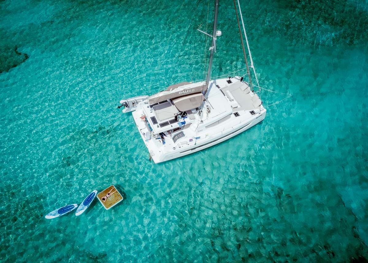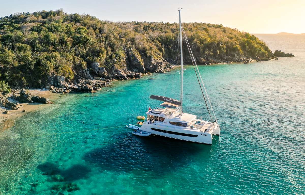 KORU is a Bali 4.8 catamaran offering three generously appointed queen cabins for up to 6 guests. Built in 2021, she combines the spacious deck plan that defines her class with thoughtful engineering for extended Caribbean voyages. The layout prioritises comfort and sociability, with abundant outdoor living spread across the foredeck, flybridge, and aft dining area.