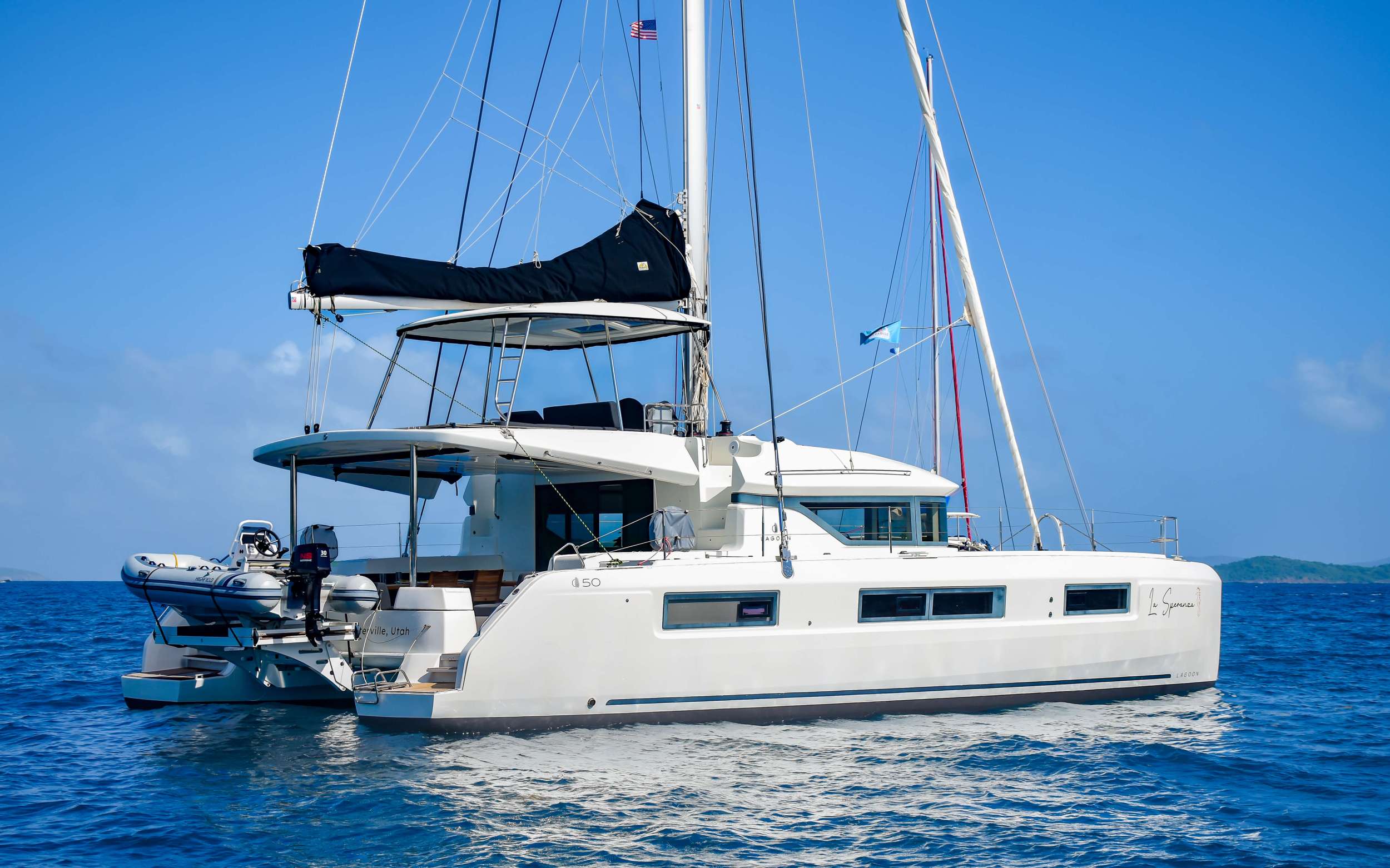 LA SPERANZA is a 2020 Lagoon 50 designed for discerning groups seeking the ease and stability of a modern catamaran in the US Virgin Islands. Three queen cabins accommodate up to six guests, each with ensuite facilities and climate control throughout. Natural light floods the interiors via generous windows, while the salon provides a refined gathering space or private retreat.