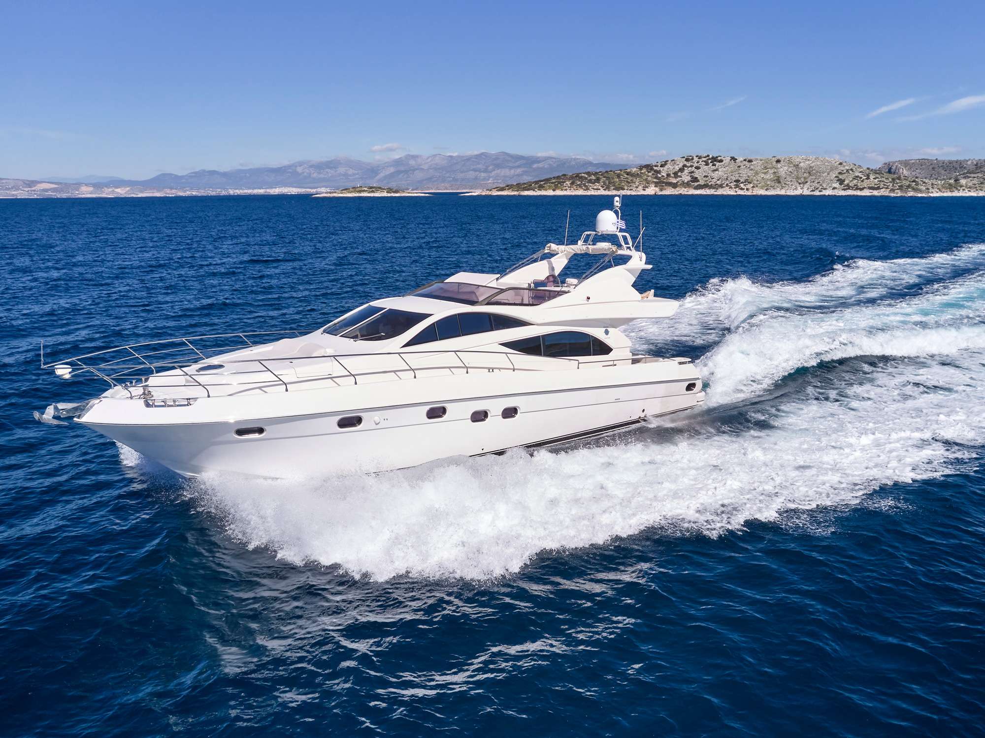 - •Flybridge with 360-degree sightlines across the Aegean and Cycladic islands