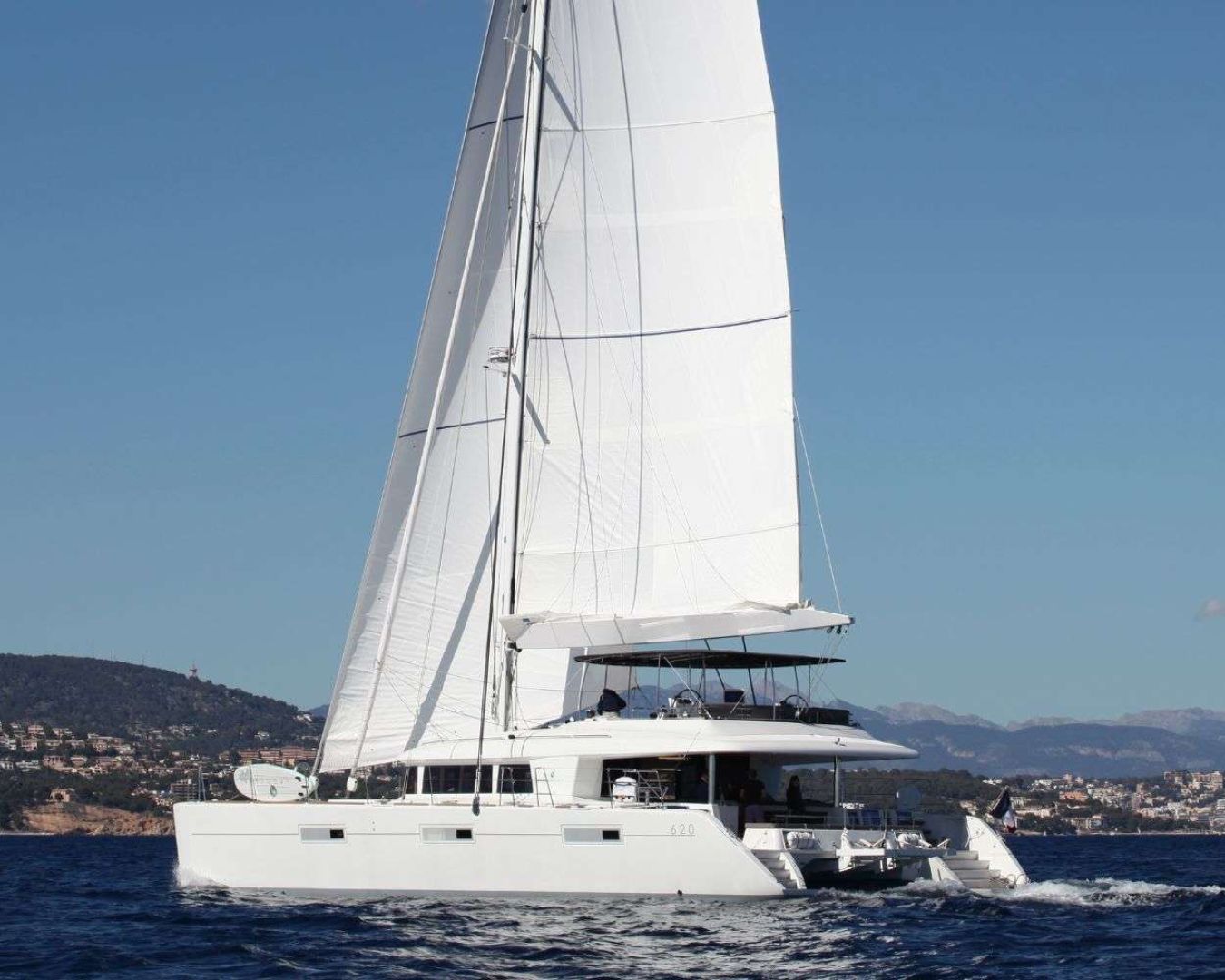 LADY M is a Lagoon 620 catamaran built in 2016, offering three double cabins for up to six guests across the Western Mediterranean. Her stability and shallow draft make her ideal for exploring Sardinia's intricate coastline, from the Maddalena archipelago to Porto Cervo's protected anchorages. The dual-hulled design provides generous deck space and natural ventilation throughout, creating an open, airy atmosphere that feels both spacious and intimate.