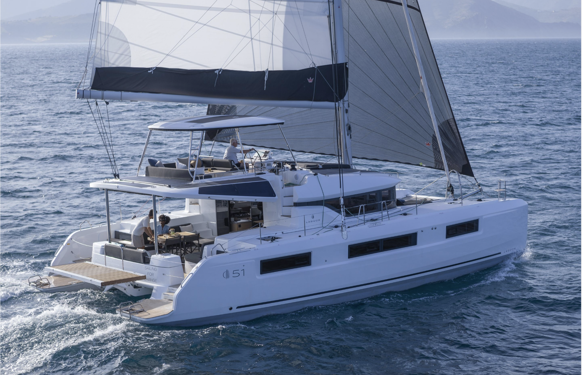 Lagoon 51 catamaran for 12 in the Aegean. Bareboat from Athens.