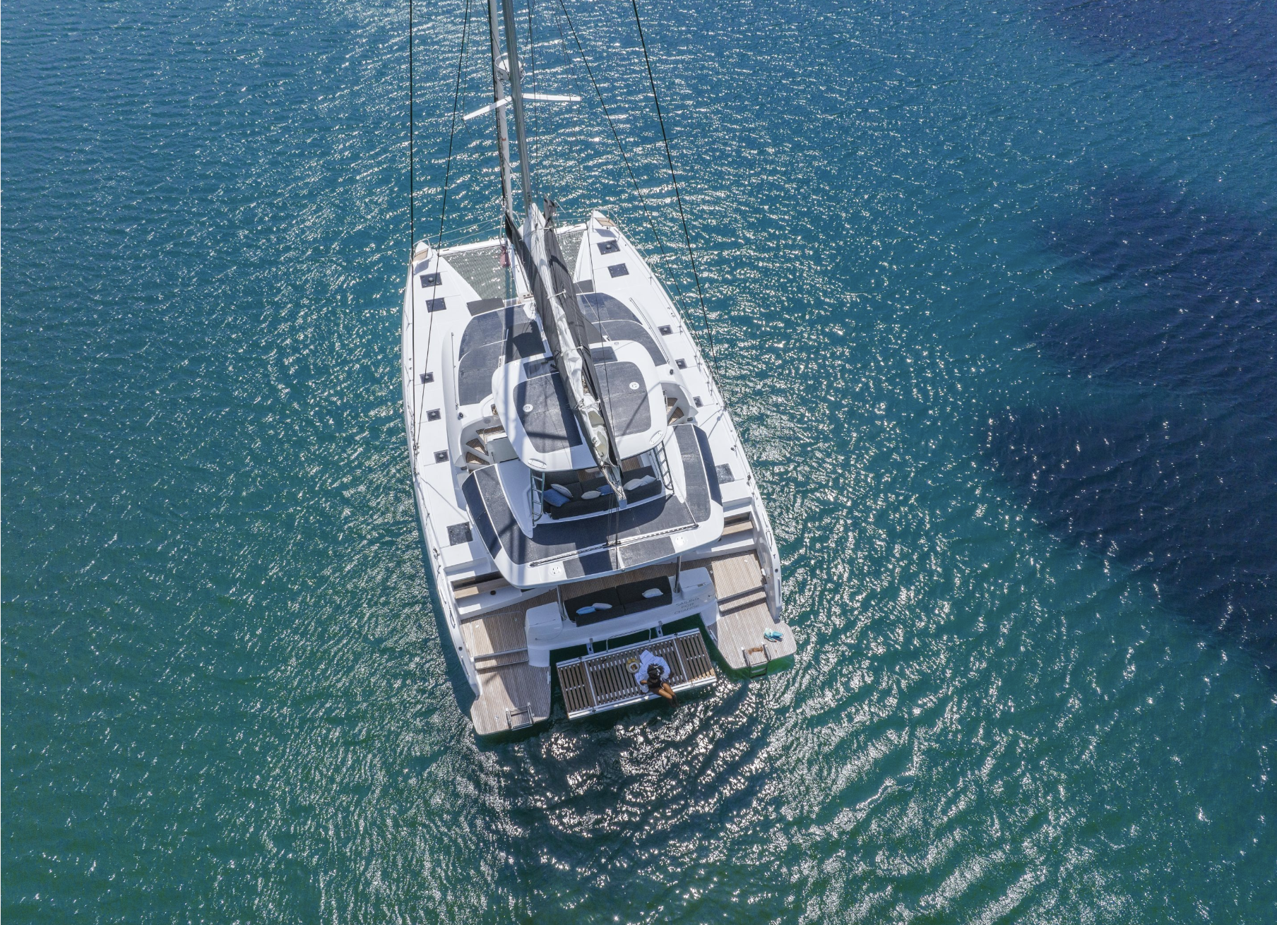 Bareboat charters require relevant sailing experience and a valid skipper's licence. The yacht carries modern provisioning systems including a watermaker, generator, and solar panels, alongside air conditioning and heating for year-round comfort. A hydraulic bathing platform, bimini shade, and dinghy facilitate water access and exploration of sheltered anchorages throughout the region.