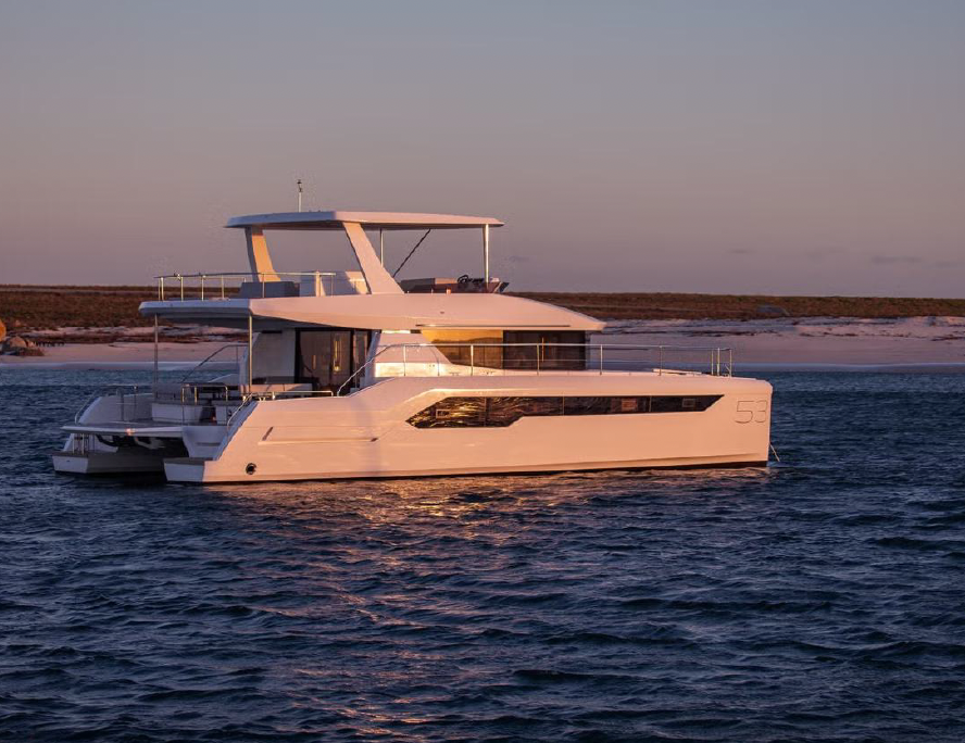 The Leopard 53 catamaran combines the stability and space of modern twin-hull design with refined comfort, accommodating up to twelve guests across three double cabins. Her 2024 build reflects contemporary yacht architecture, with a bright saloon flowing seamlessly into expansive outdoor entertaining zones.