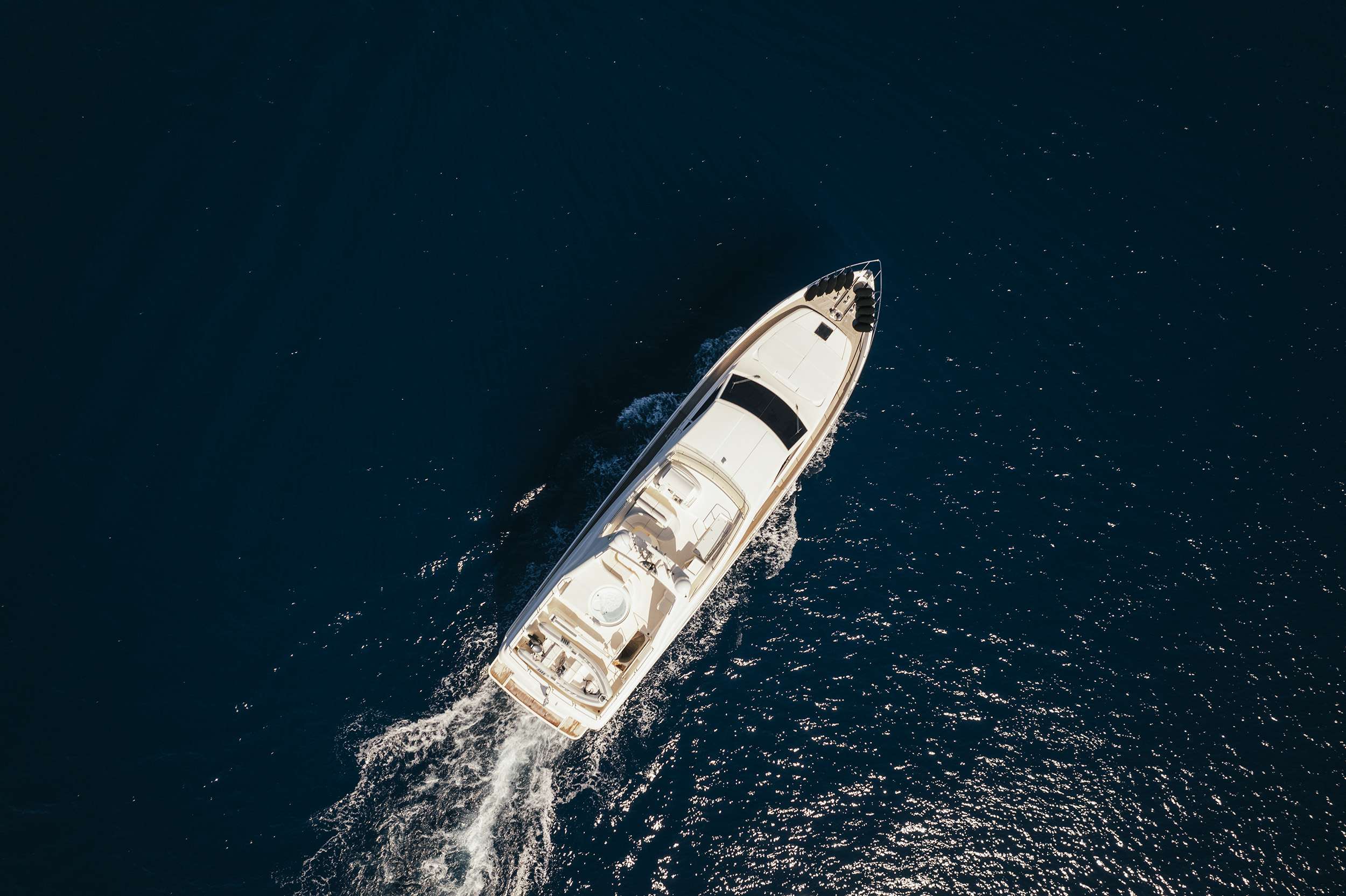 LIDIA is a Ferretti 830 motor yacht combining Italian design with Aegean practicality. Her four cabins accommodate eight guests across three doubles and one twin, each with en-suite facilities. The open saloon and dining space flow naturally, flooded with natural light and finished in soft, sophisticated tones that complement rather than distract from the seascape beyond.