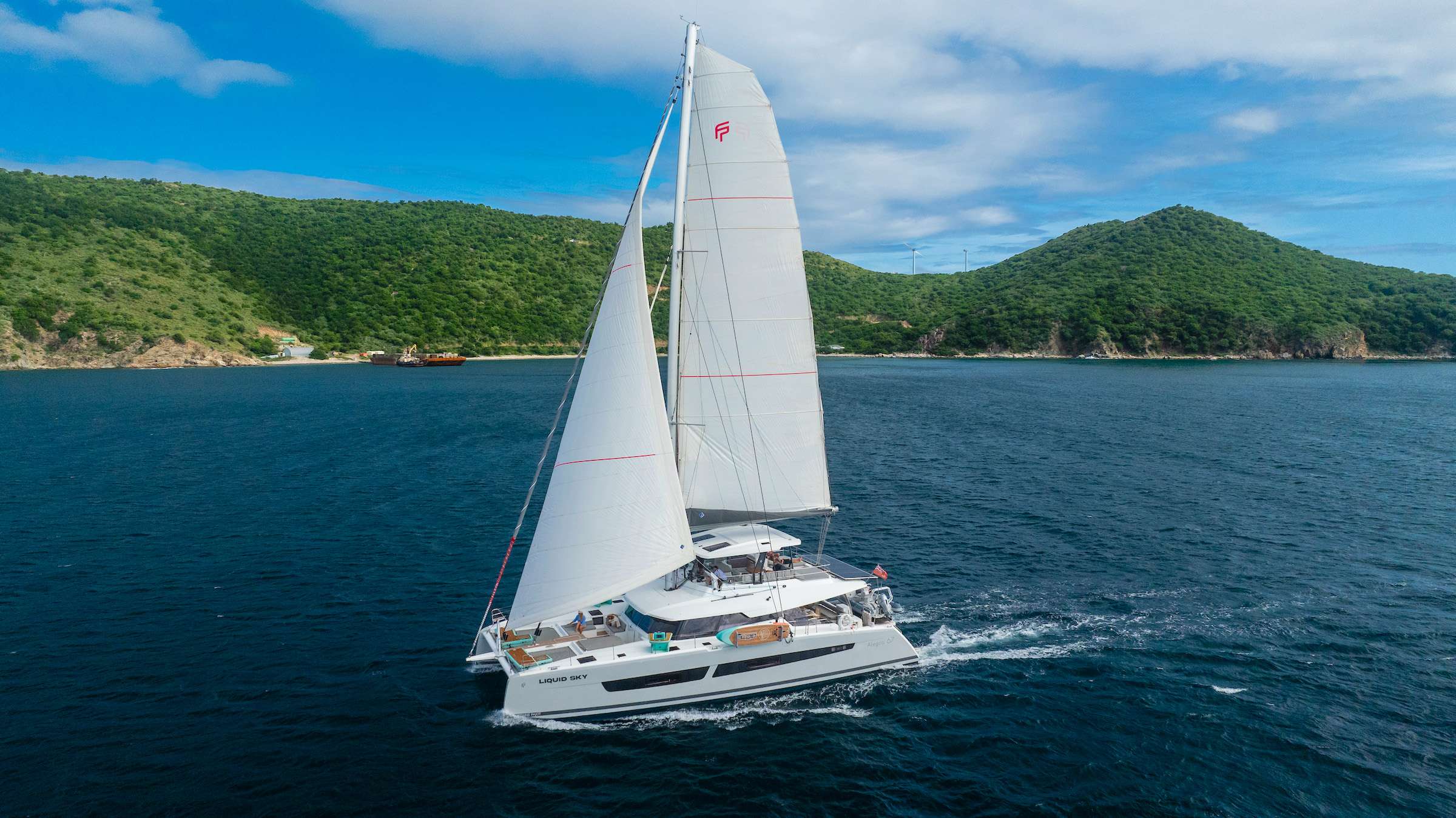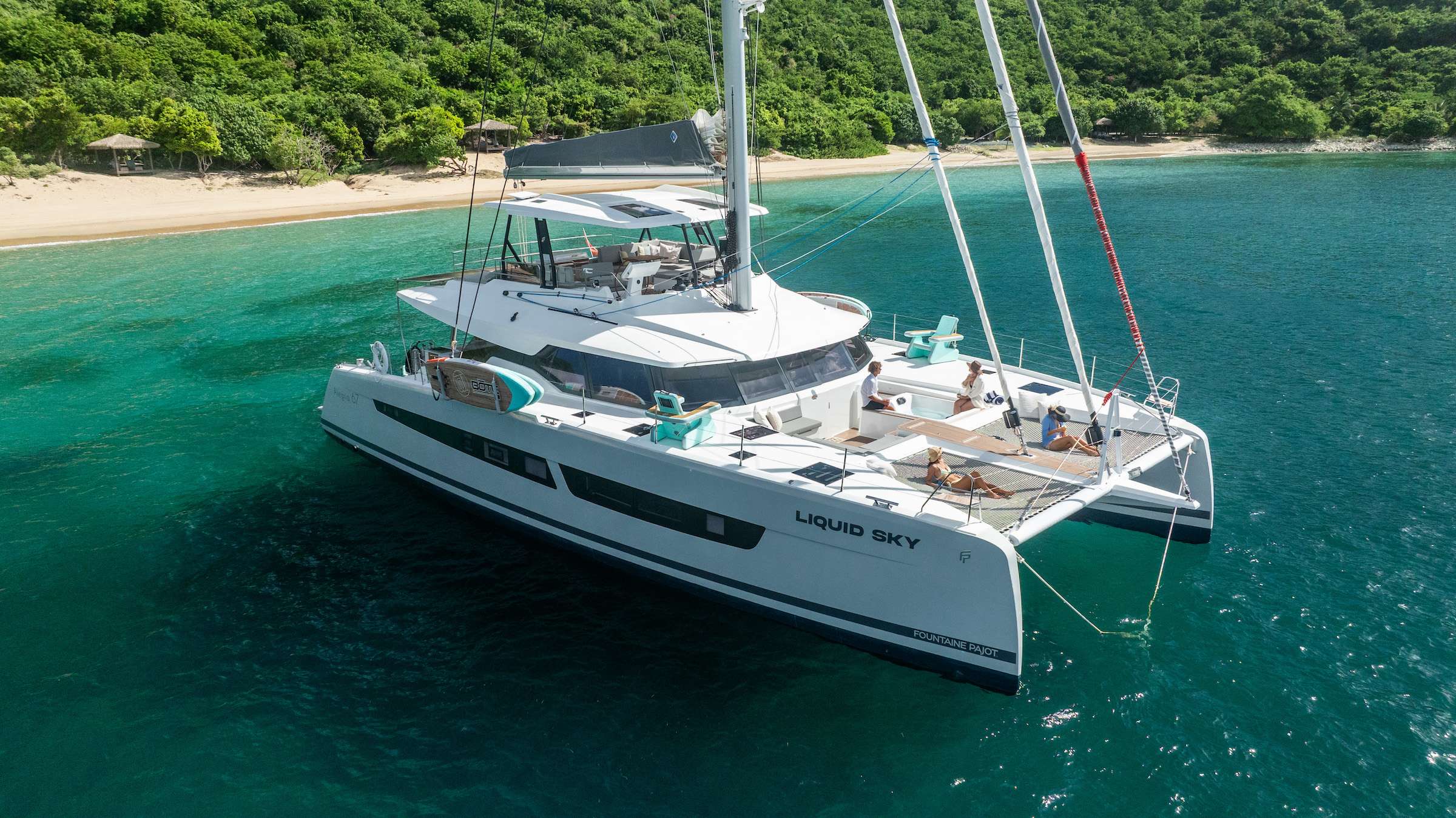 LIQUID SKY is a Fountaine Pajot Alegria 67 crewed catamaran delivering performance and comfort across the British Virgin Islands. Built in 2024, she accommodates 8 guests in 4 cabins (three doubles and one twin), each with private ensuite. The contemporary open-plan saloon and expansive deck spaces create an ideal setting for both social gathering and private retreat.