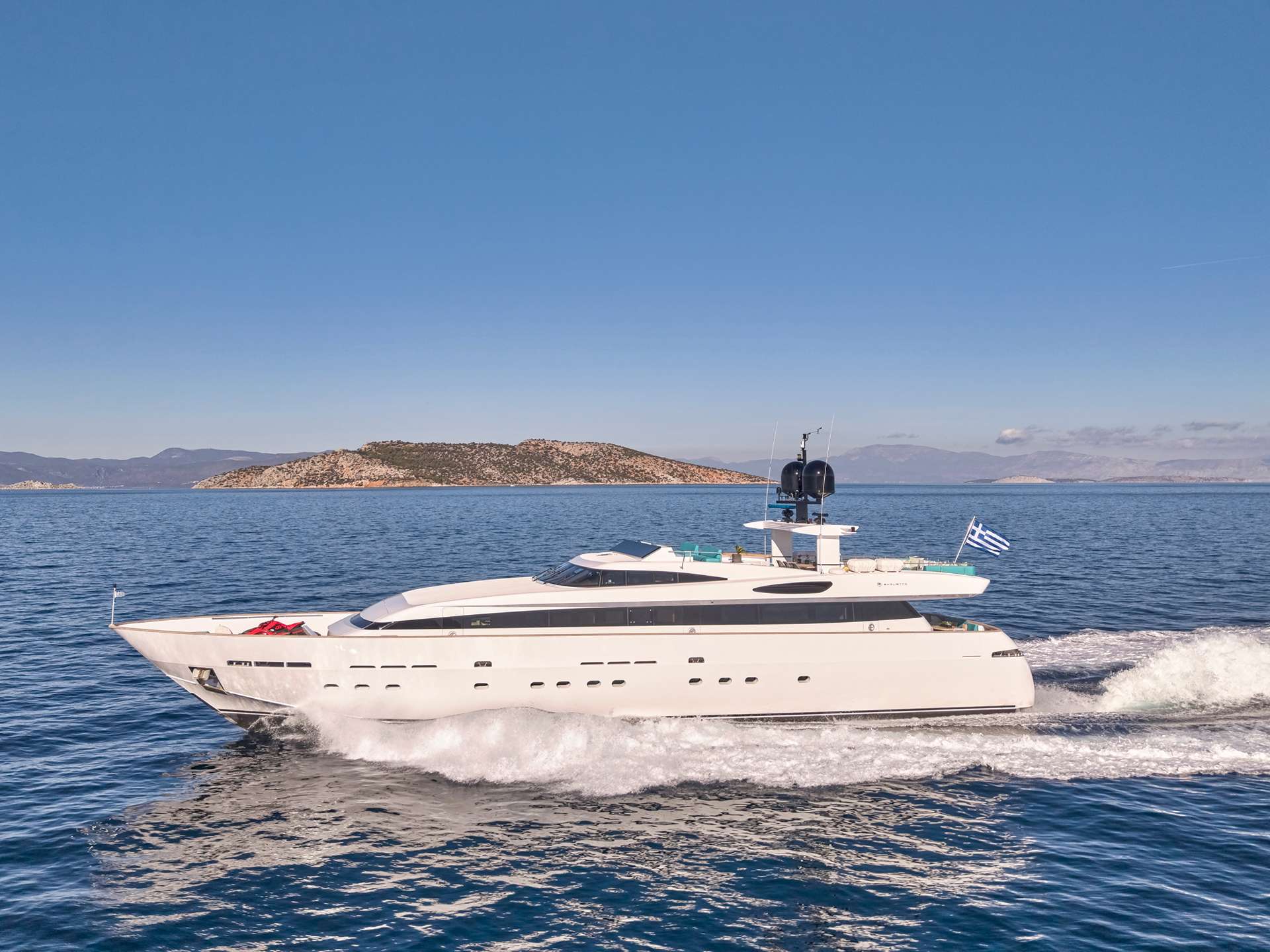 LOANA is a Baglietto motor yacht offering refined accommodation across five cabins, each designed with contemporary restraint and soft, neutral palettes. Recent refits have brought new flooring throughout, a refreshed hull and superstructure, and an improved flybridge layout, ensuring the vessel combines timeless Italian craftsmanship with modern comfort.