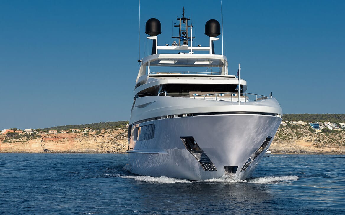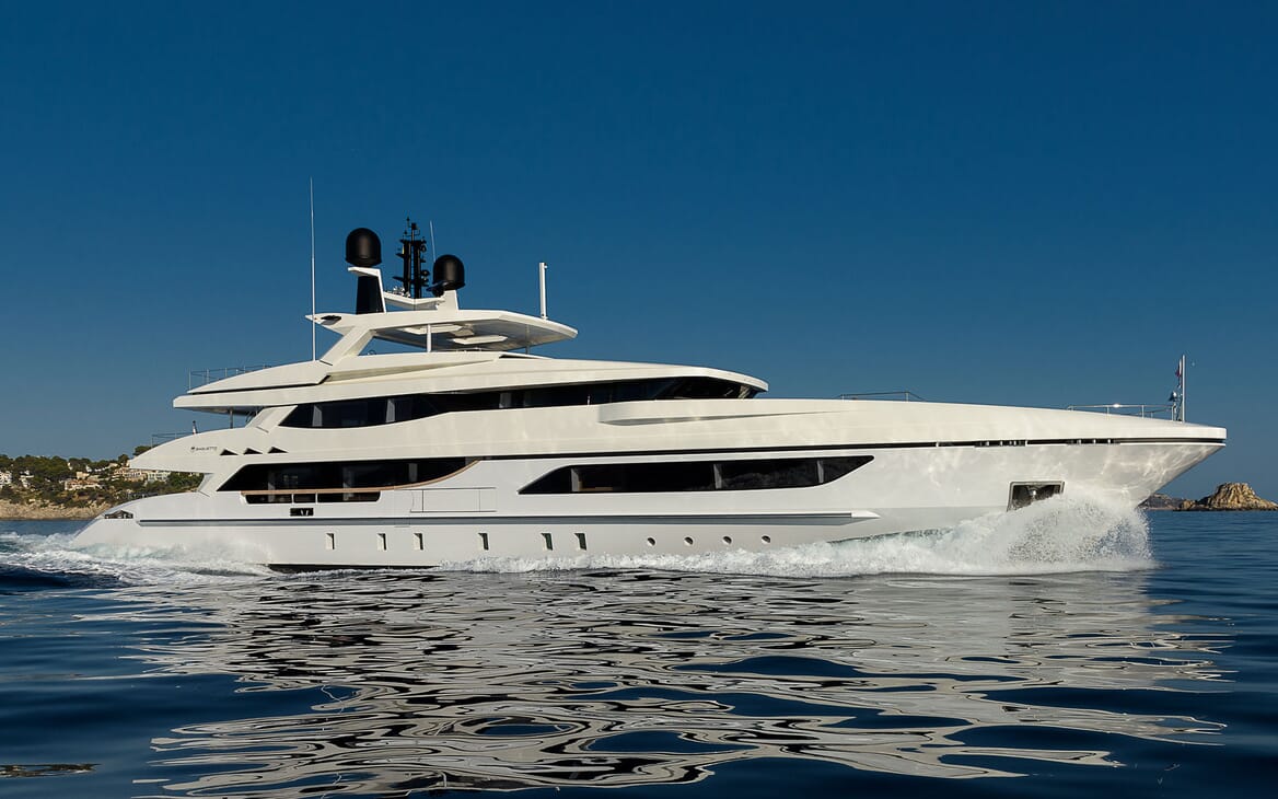 MR T is a Baglietto motor yacht built in 2014 that commands presence without pretence. Her five generously appointed cabins accommodate twelve guests across a layout that balances social spaces with private sanctuaries. The open-plan interior flows in soft creams, subtle blues, and dark wood, creating an atmosphere of restrained sophistication throughout.