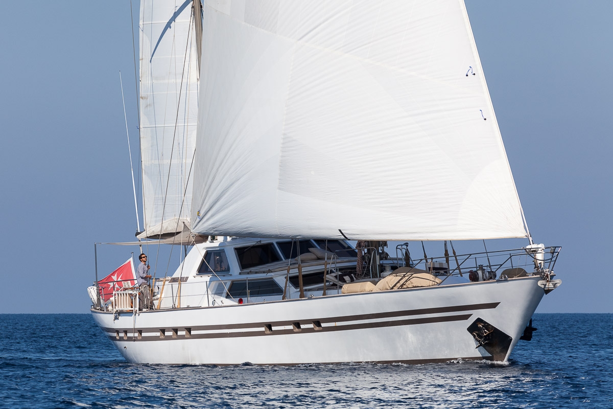 MY LOTTY is a Benetti 26m crewed sailing yacht that embodies understated Mediterranean sophistication. Built to balance seaworthiness with refined comfort, she glides through the Tyrrhenian Sea and Aegean with the grace befitting her heritage. The yacht's teak-appointed interior and generous deck spaces create distinct zones for both social entertaining and solitary repose, while her professional crew of four, led by Captain Paolo, attends to every detail of your voyage.