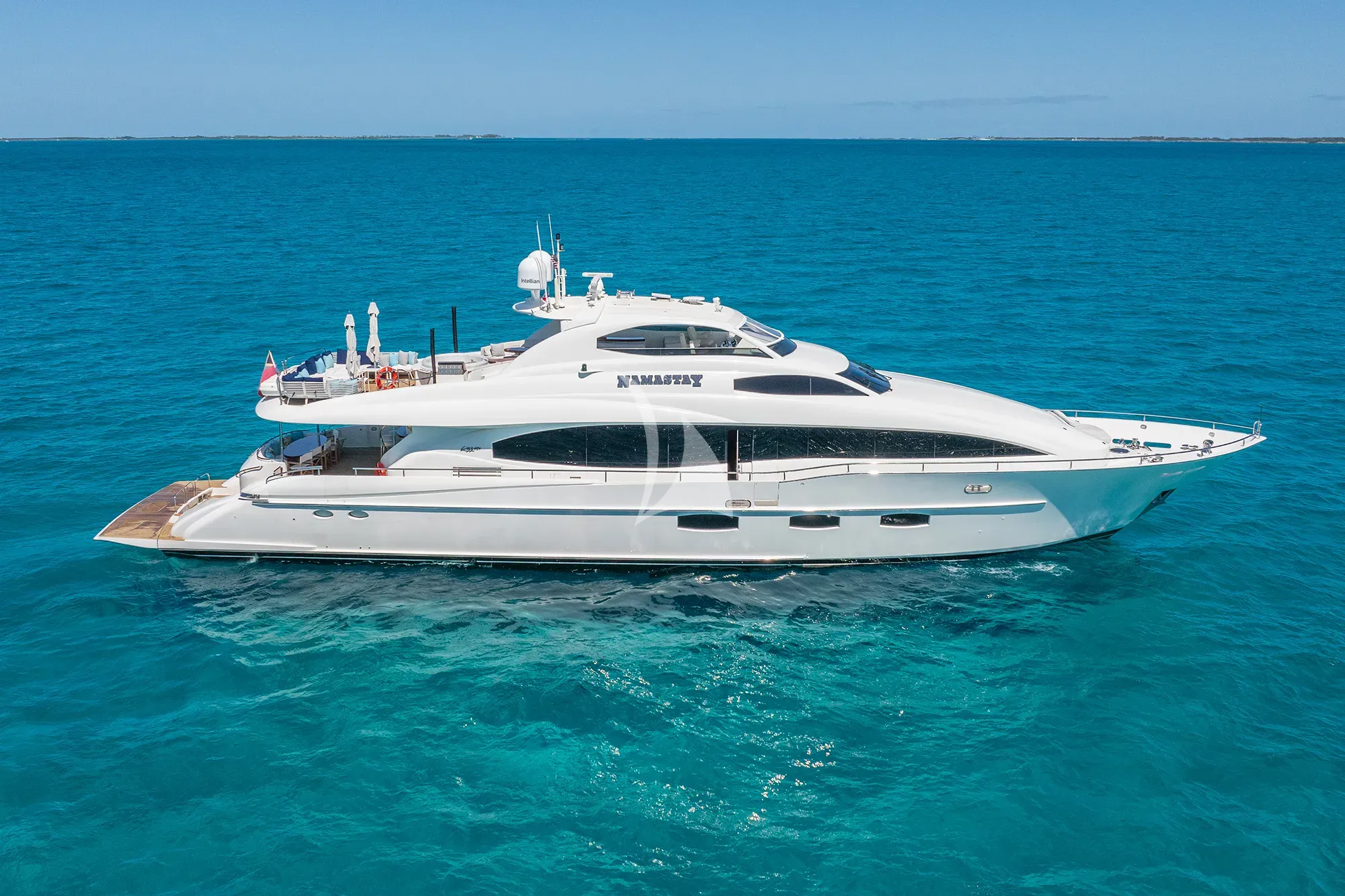 NAMASTAY is a Lazzara 116 motor yacht purpose-built for discerning guests seeking refined comfort across the Caribbean and North American coastlines. Following a comprehensive 2022 refit, she presents newly refitted interiors with curated artwork, soft furnishings, and an advanced AV system, paired with a full mechanical refresh. Her off-white palette and wood finishes create a fresh, inviting ambiance that balances nautical elegance with contemporary ease.