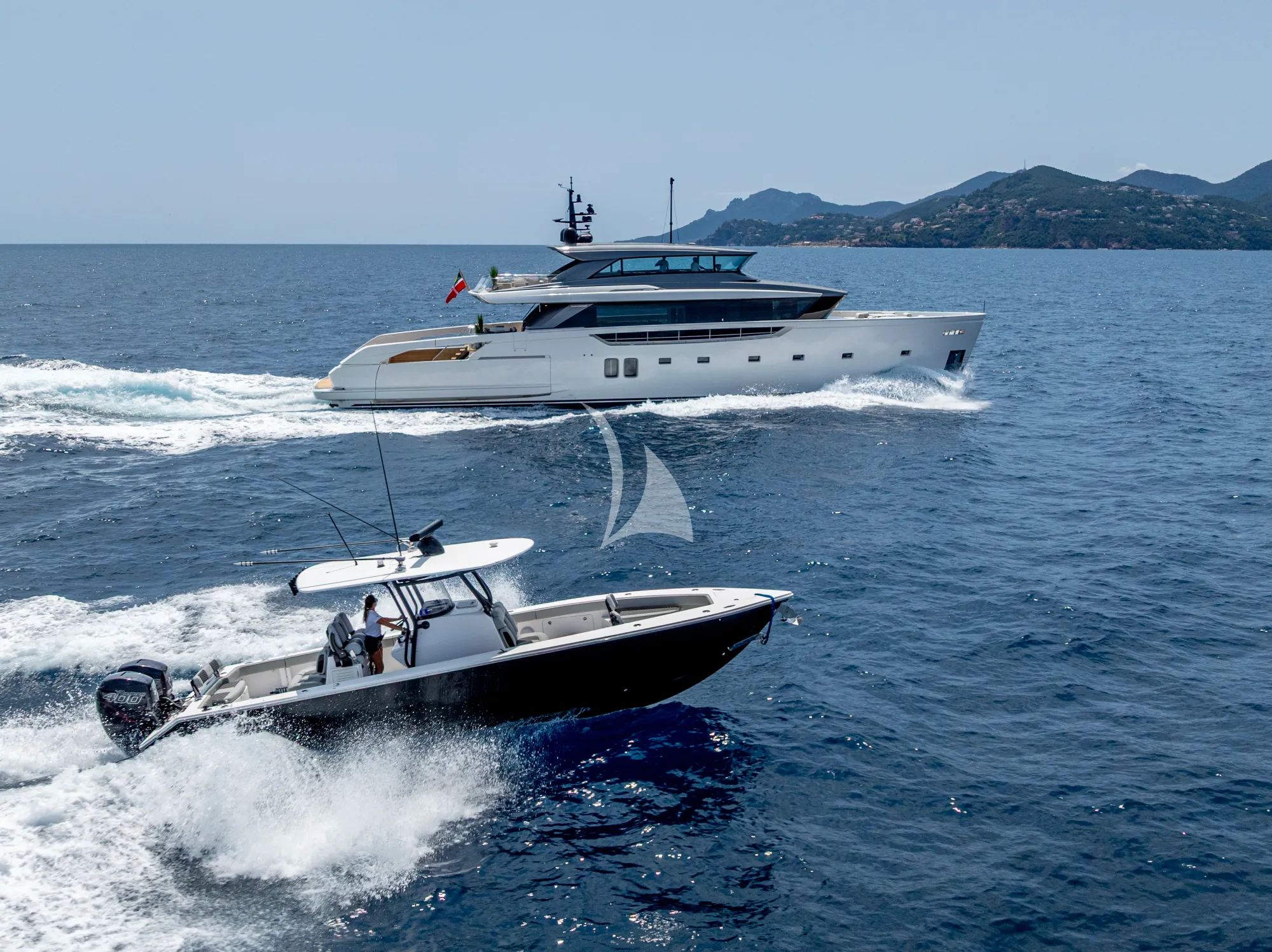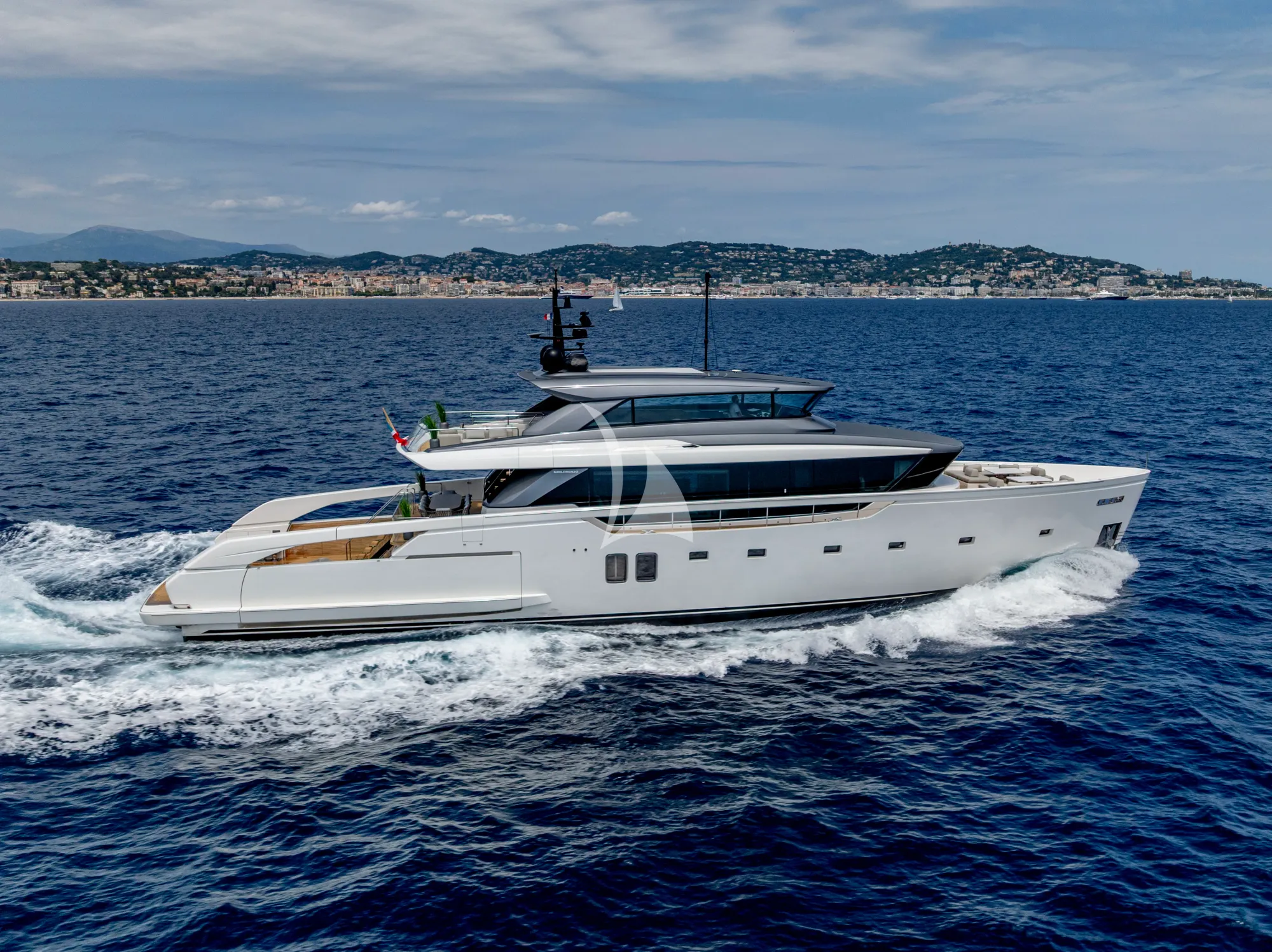 Sanlorenzo SX112 yacht in the Exumas. Crewed luxury, 4 cabins, Nassau base.