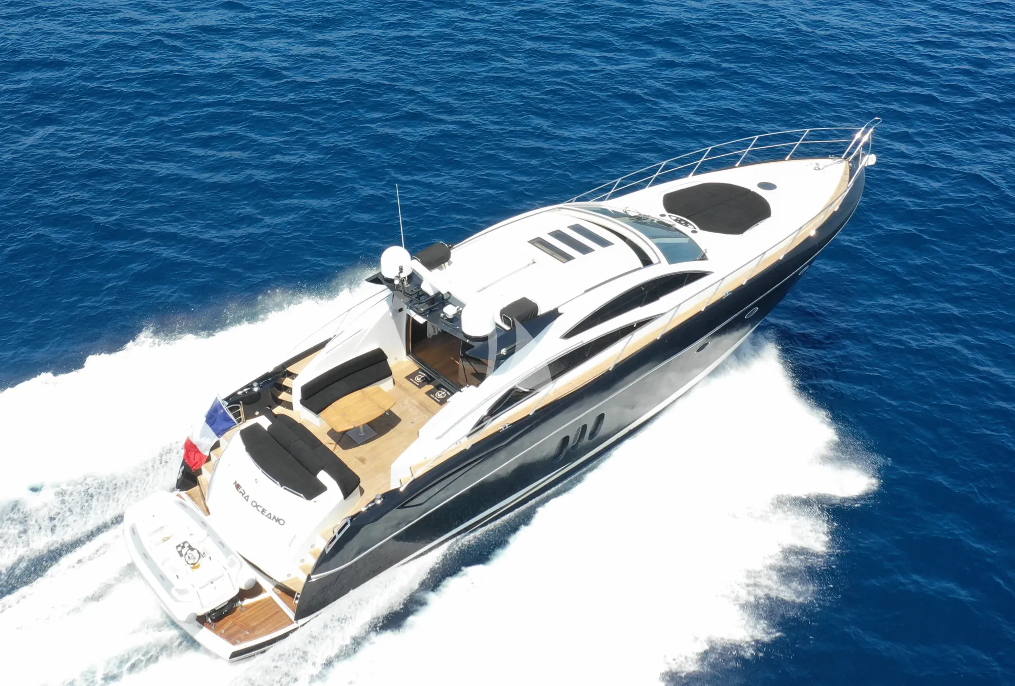 NERA OCEANO is a Sunseeker 72 motor yacht offering refined cruising across the Mediterranean's most coveted coastlines. Built in 2001 and thoughtfully maintained, she combines sporty lines with a practical layout ideal for 6 guests across 3 cabins. The saloon features a generous sunroof opening onto the upper deck, whilst the aft cockpit provides an ideal platform for alfresco dining and social gatherings. Below deck, a second saloon and galley facilitate informal moments between excursions.