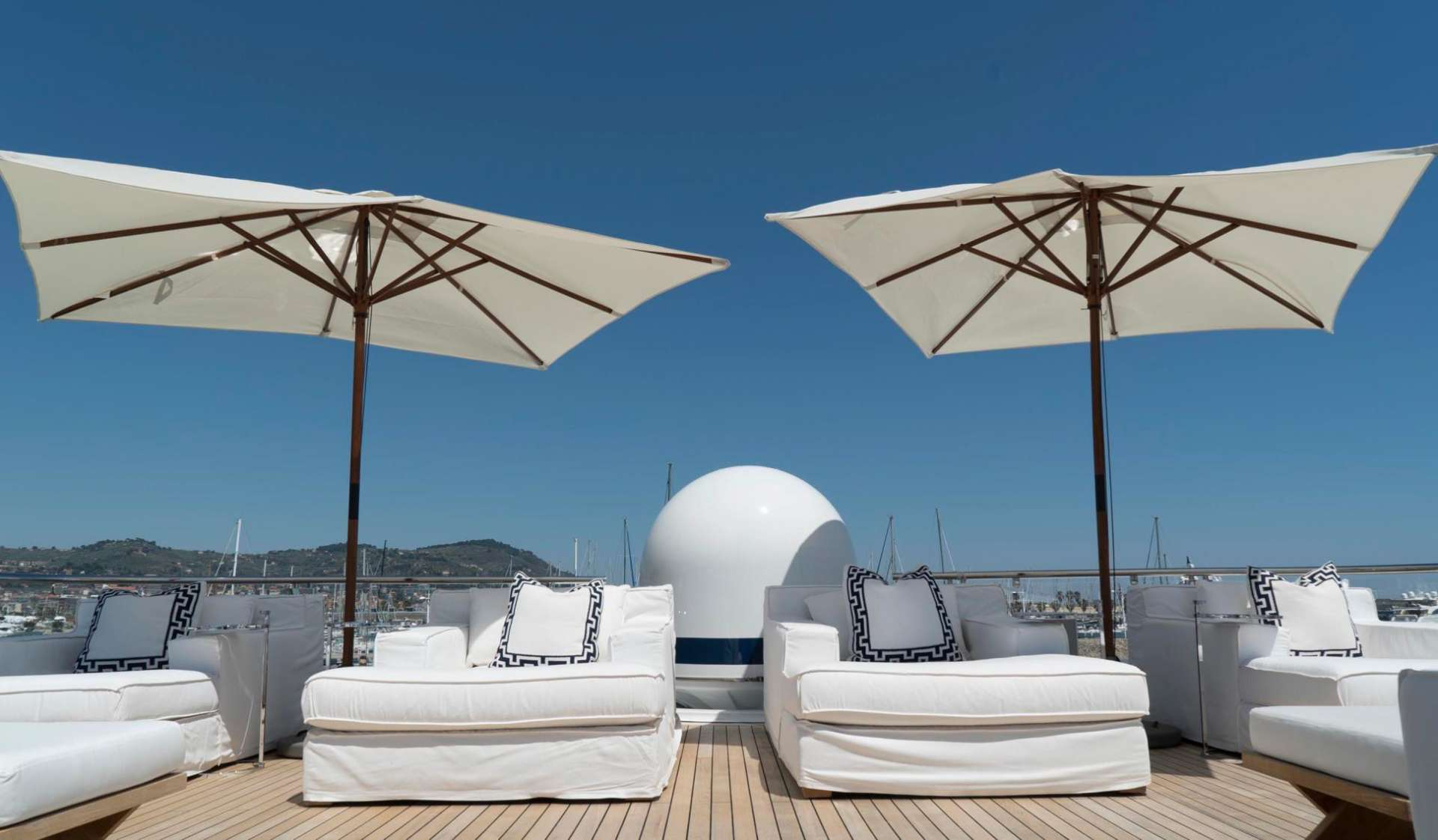 Deck space is exceptional, spanning three levels with distinct entertaining zones. The main deck features a sprawling beach club, jacuzzi, and balcony ideal for sunset gatherings, whilst the upper deck observation lounge offers panoramic sightlines and direct access from the master stateroom. The sky lounge, wrapped in floor-to-ceiling glazing, frames Mediterranean views unobstructed.